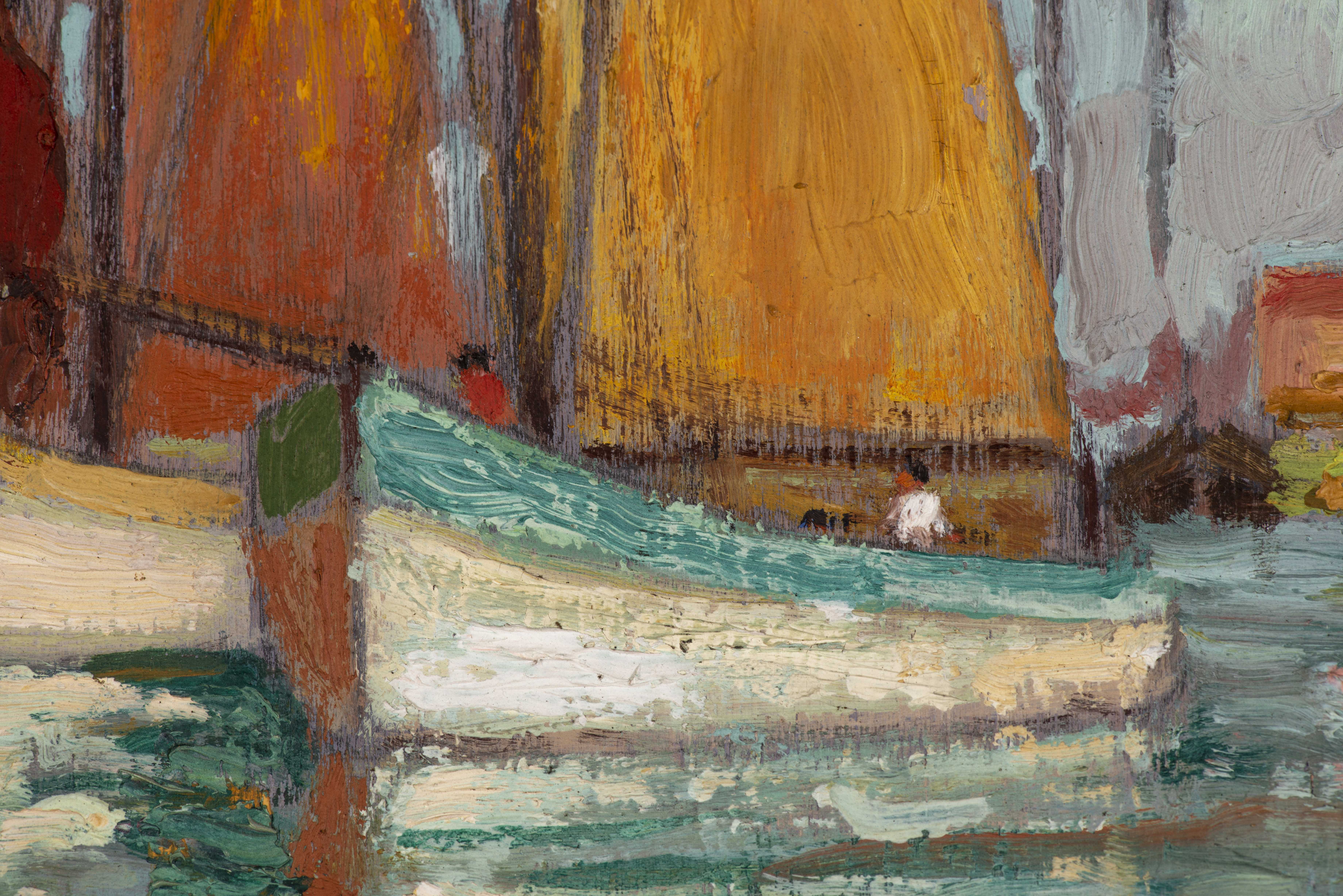 Huile sur bois, inscrit au dos Concarneau (ou Lézardrieux) au crayon et datée 1924.