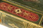 Écritoire simulant un livre recouvert de cuir estampé et doré imitant des caissons, ouvrant sur un feutre et un compartiment à stylo et papier, petite pochette intérieure et un ouvrant sur des compartiments et un encrier.