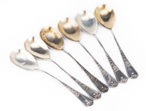 6 cuillères à confiture en argent .800 Jezler, décor Heckenrösli