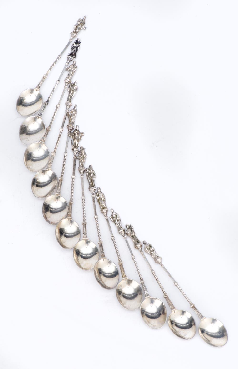 12 cuillères à café en argent .800 terminées par les 12 figures des apôtres