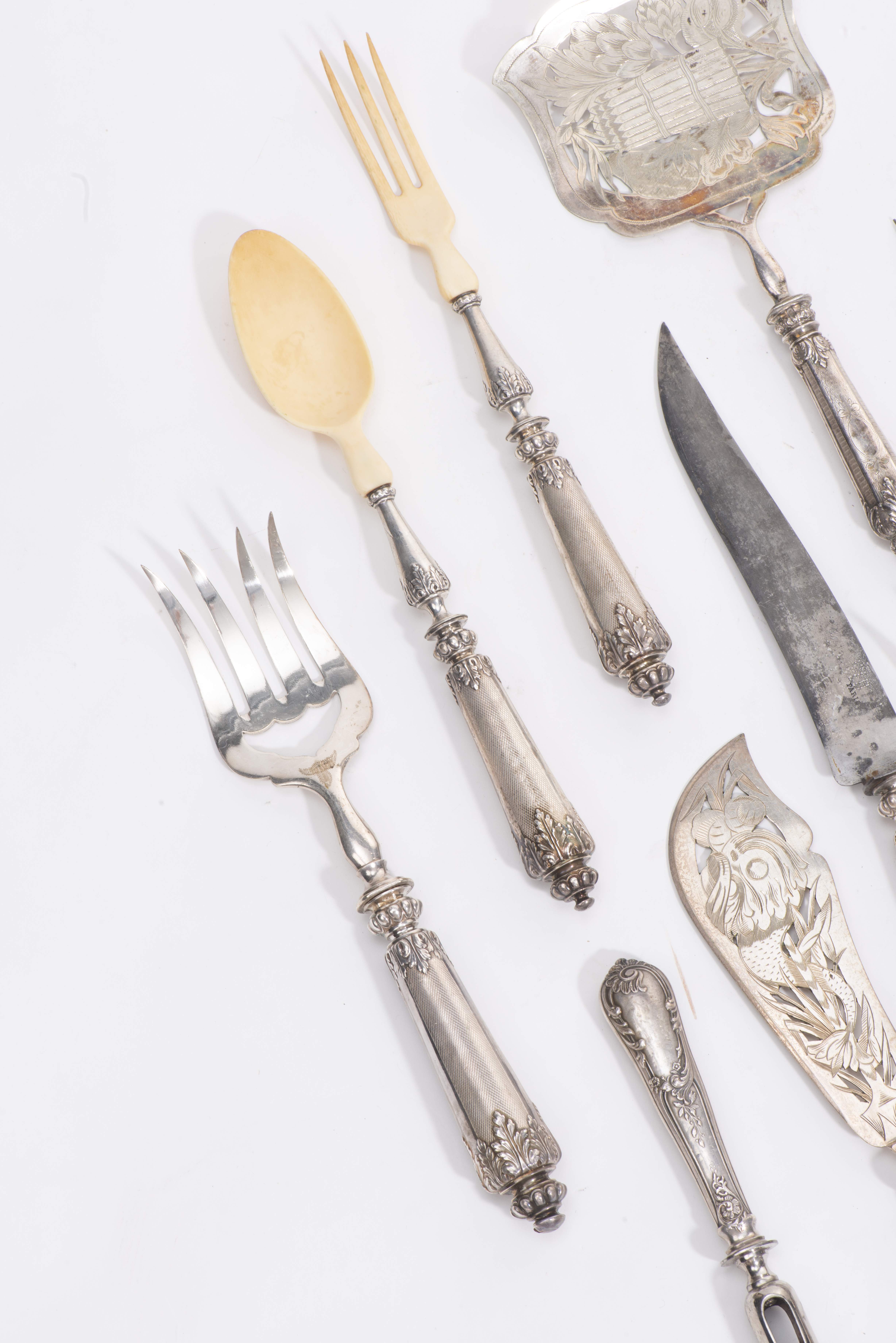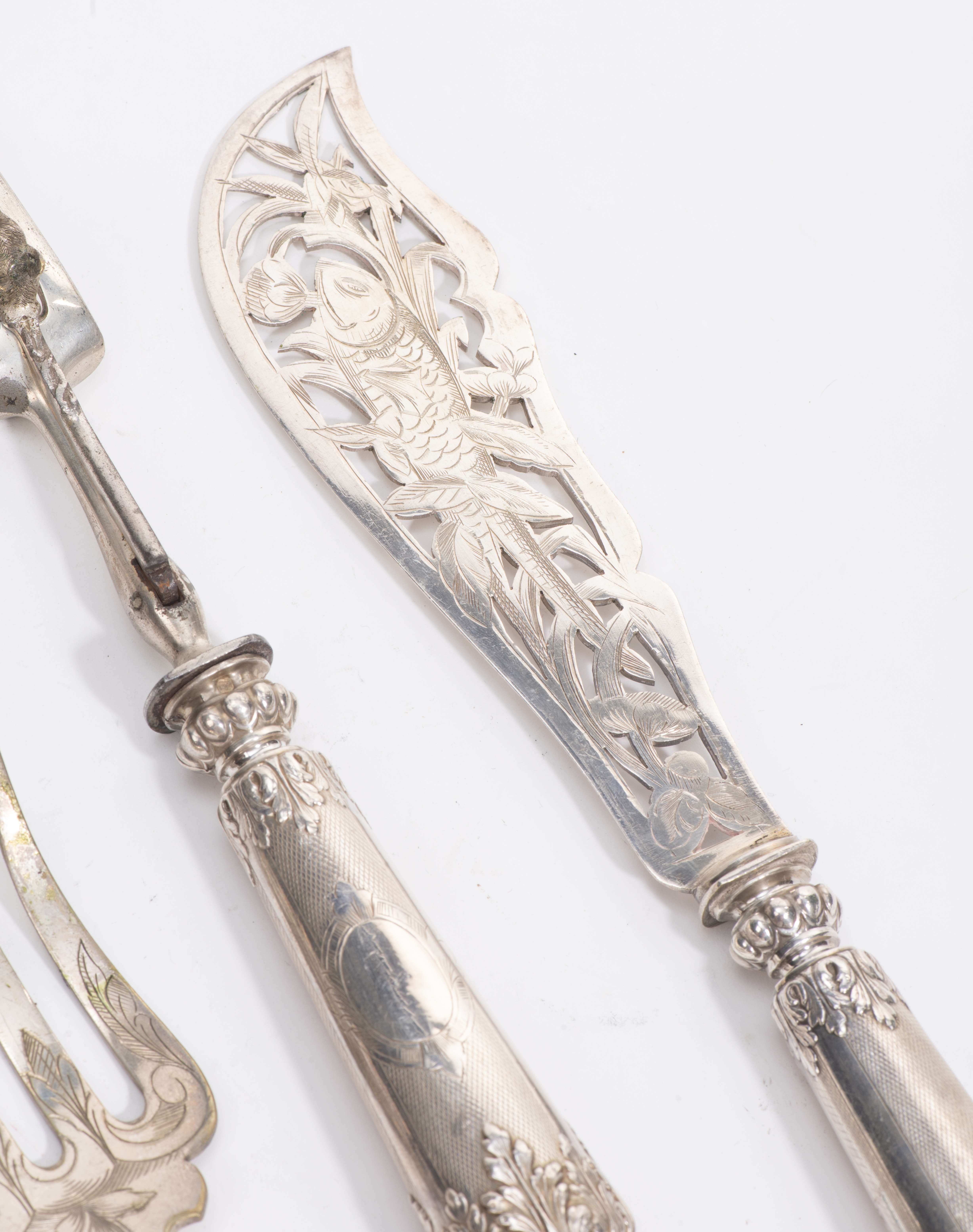 Ensemble de services à poisson, à viande et à asperge en argent français 1er titre