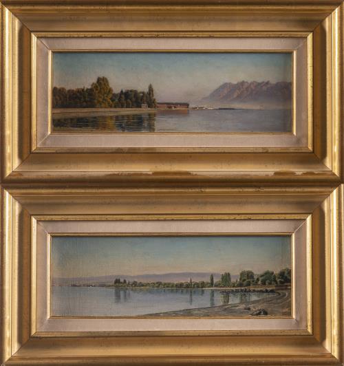 Arthur Herzog (1862-1913), "Les rives du lac", paire d’huiles