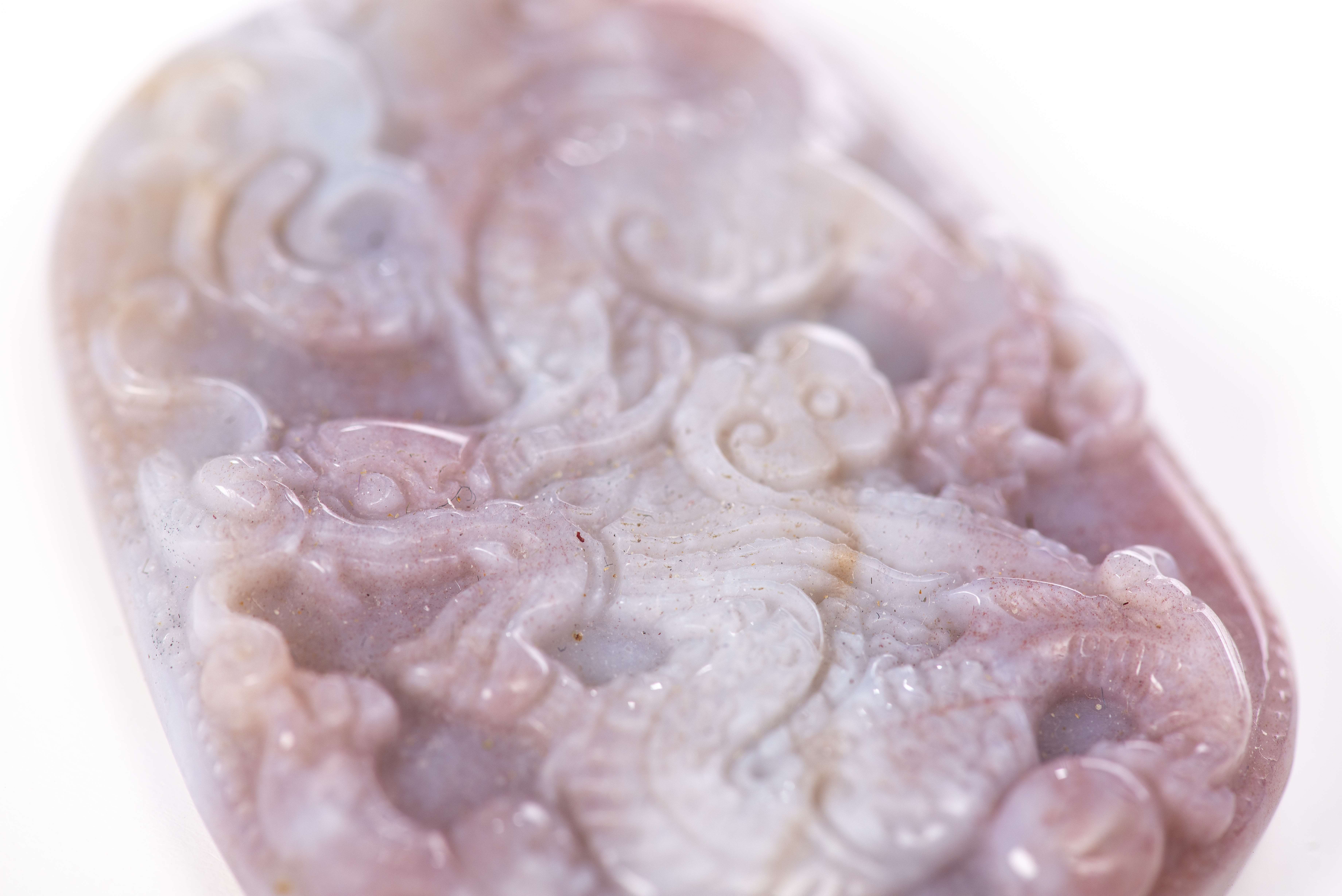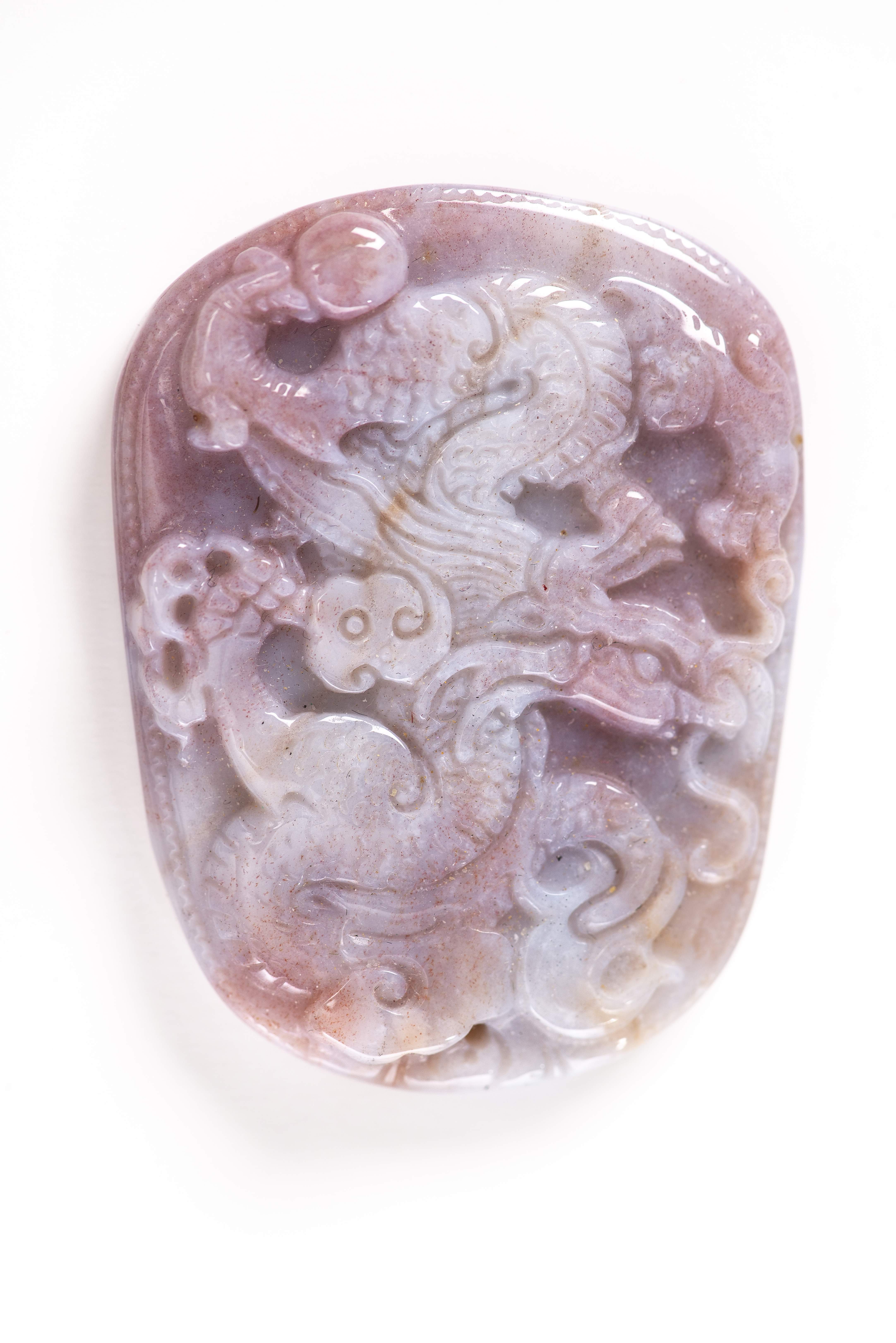 Broche en rhodonite, pendentif en jadéïte & sceau en jade néphrite