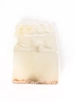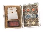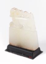 Sceau en jade néphrite surmonté d'un chien de Fô, dans son étui brodé, avec réservoir d'encre rouge
