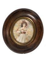 Petit encadrement ovale en bronze doré & Petite miniature peinte