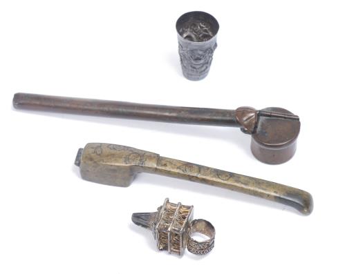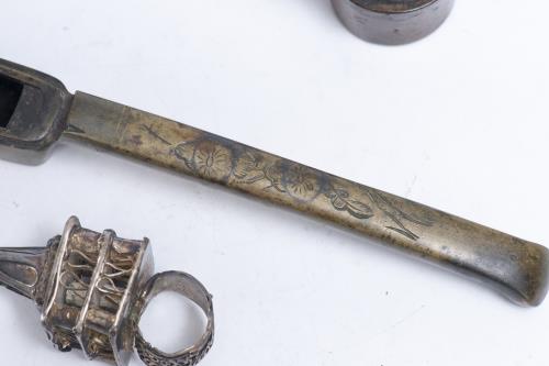 Lot d'argenterie dont: porte-pinceaux, timbale en argent chinois et bague Moghol