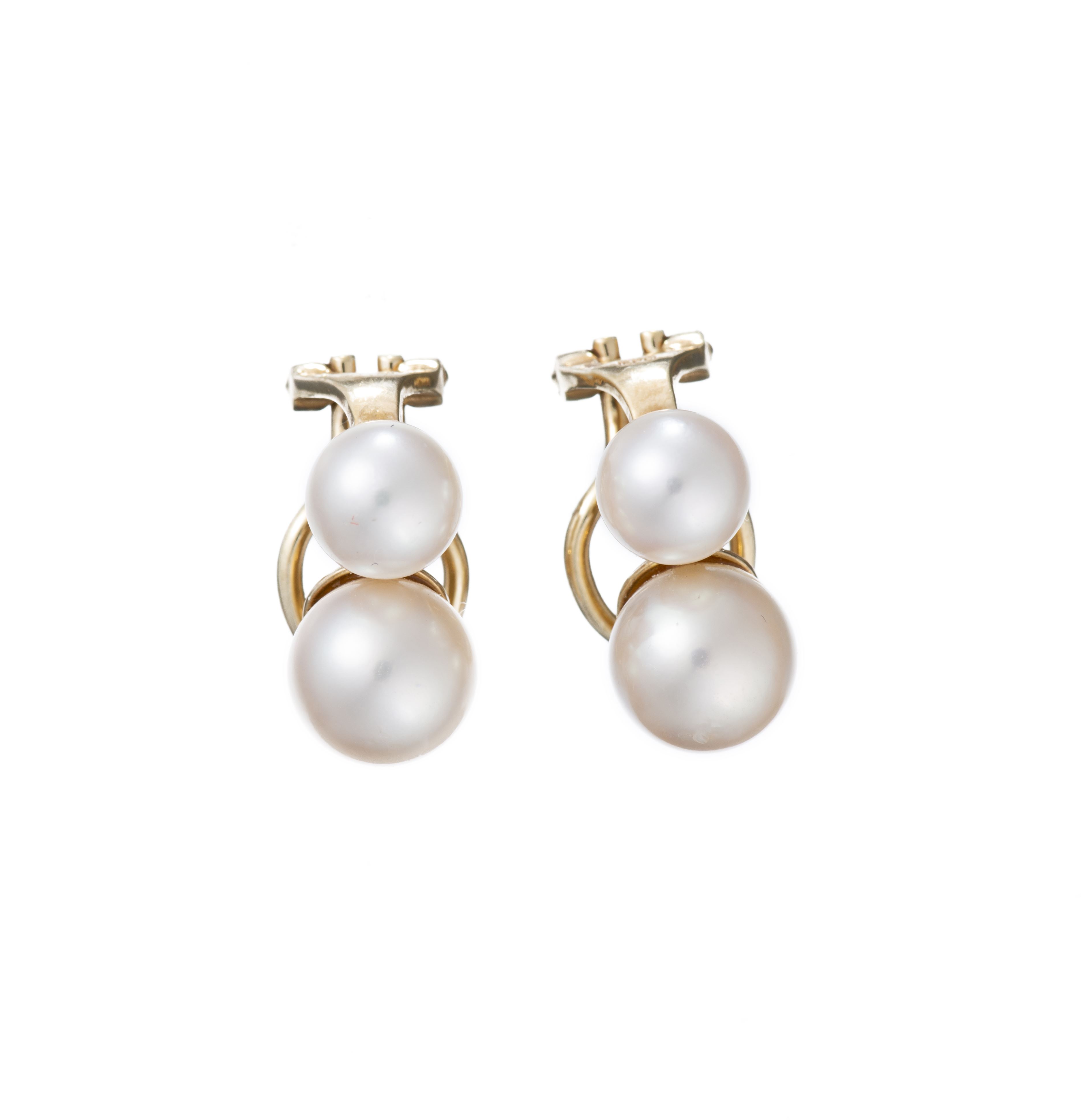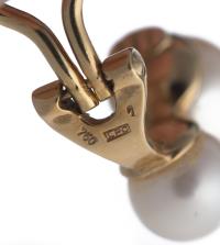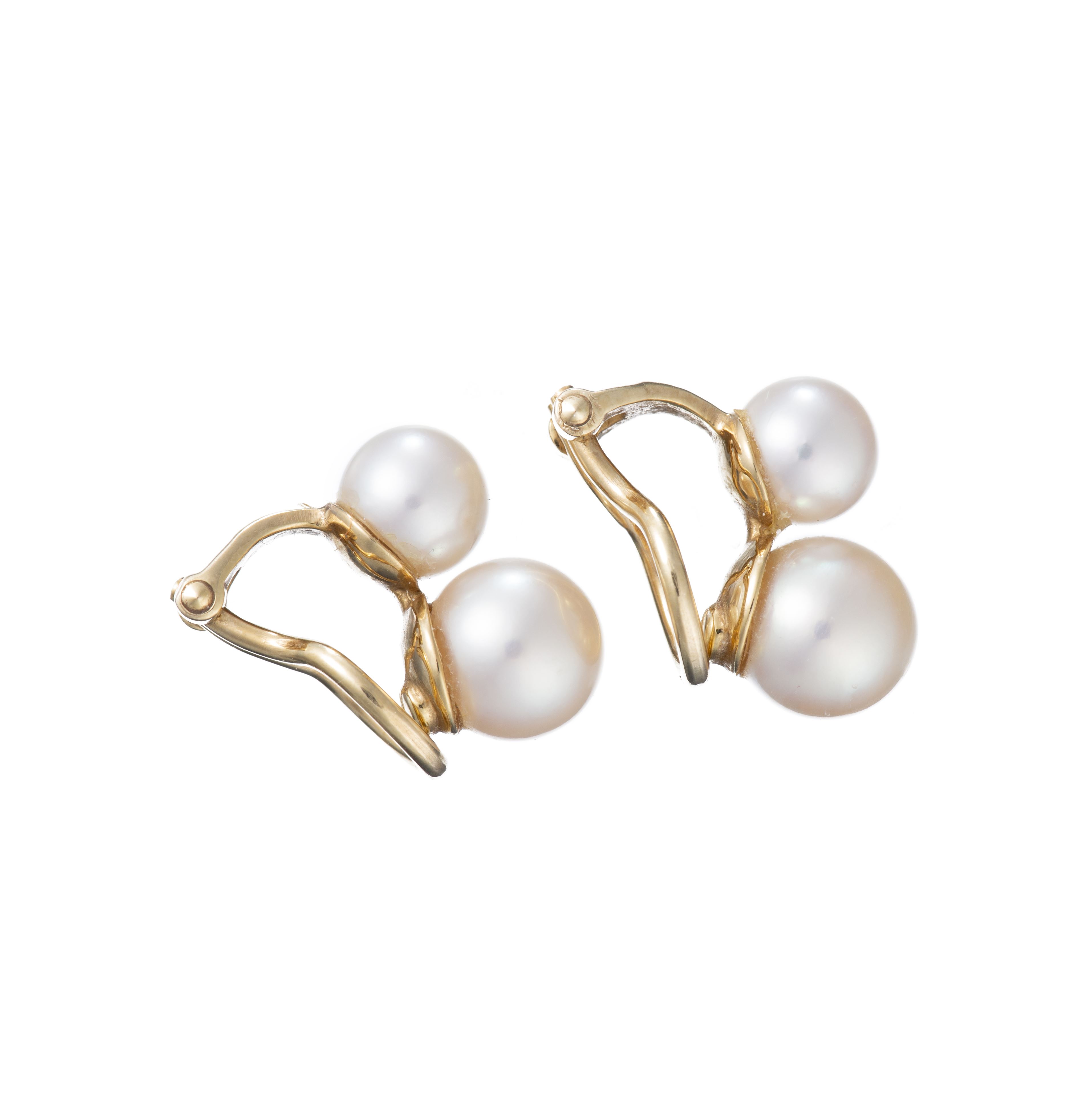 Paire de boucle d'oreille à clips en or jaune .750 et perles de culture Akoya D. 2x7.5 & 2x6.5 mm