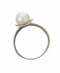 bague en or blanc .750 avec une perle Akoya D. 9 mm