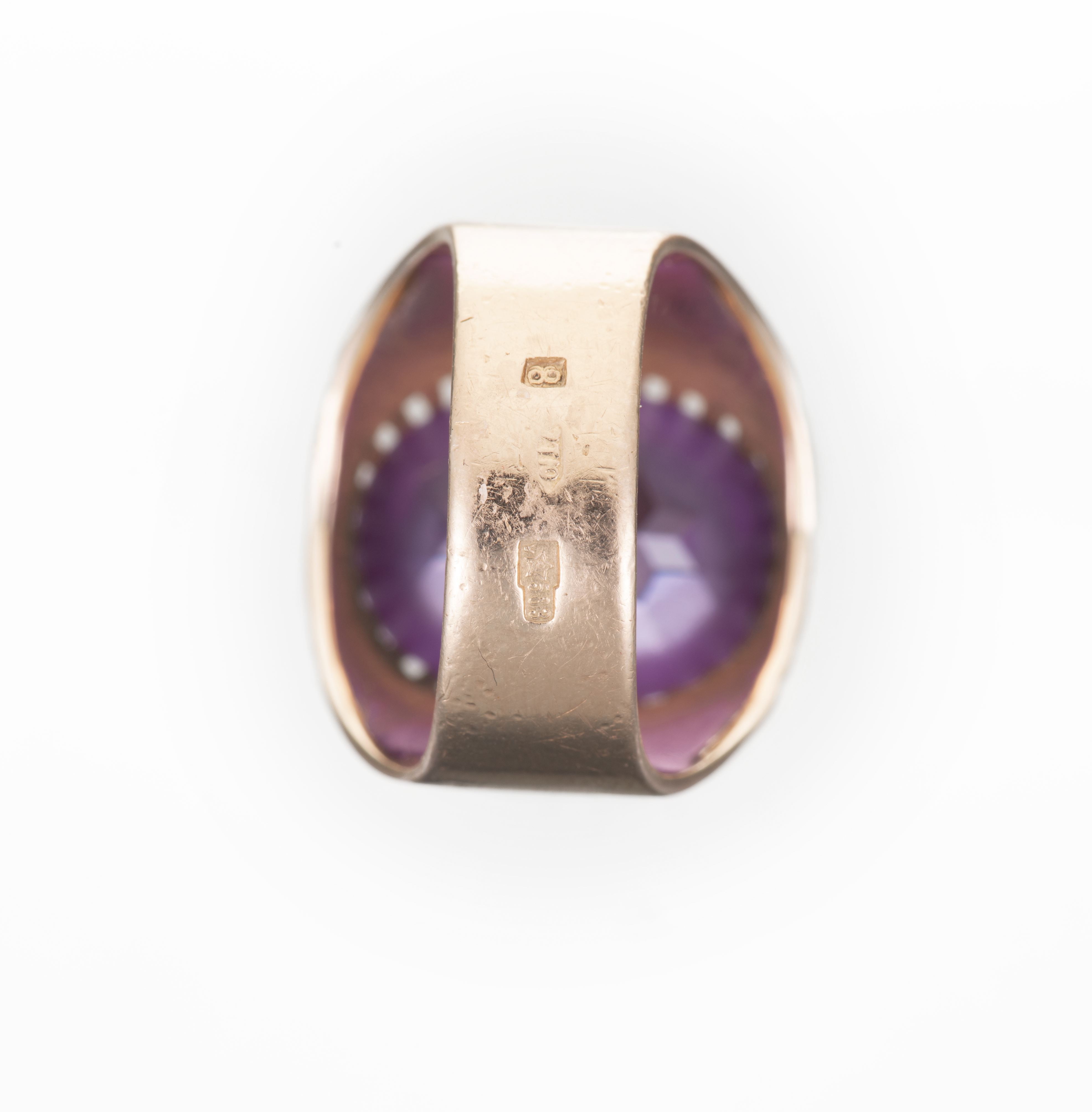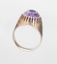 Bague en or rose .585 avec une pierre rouge synthétique