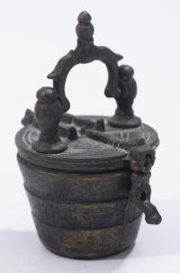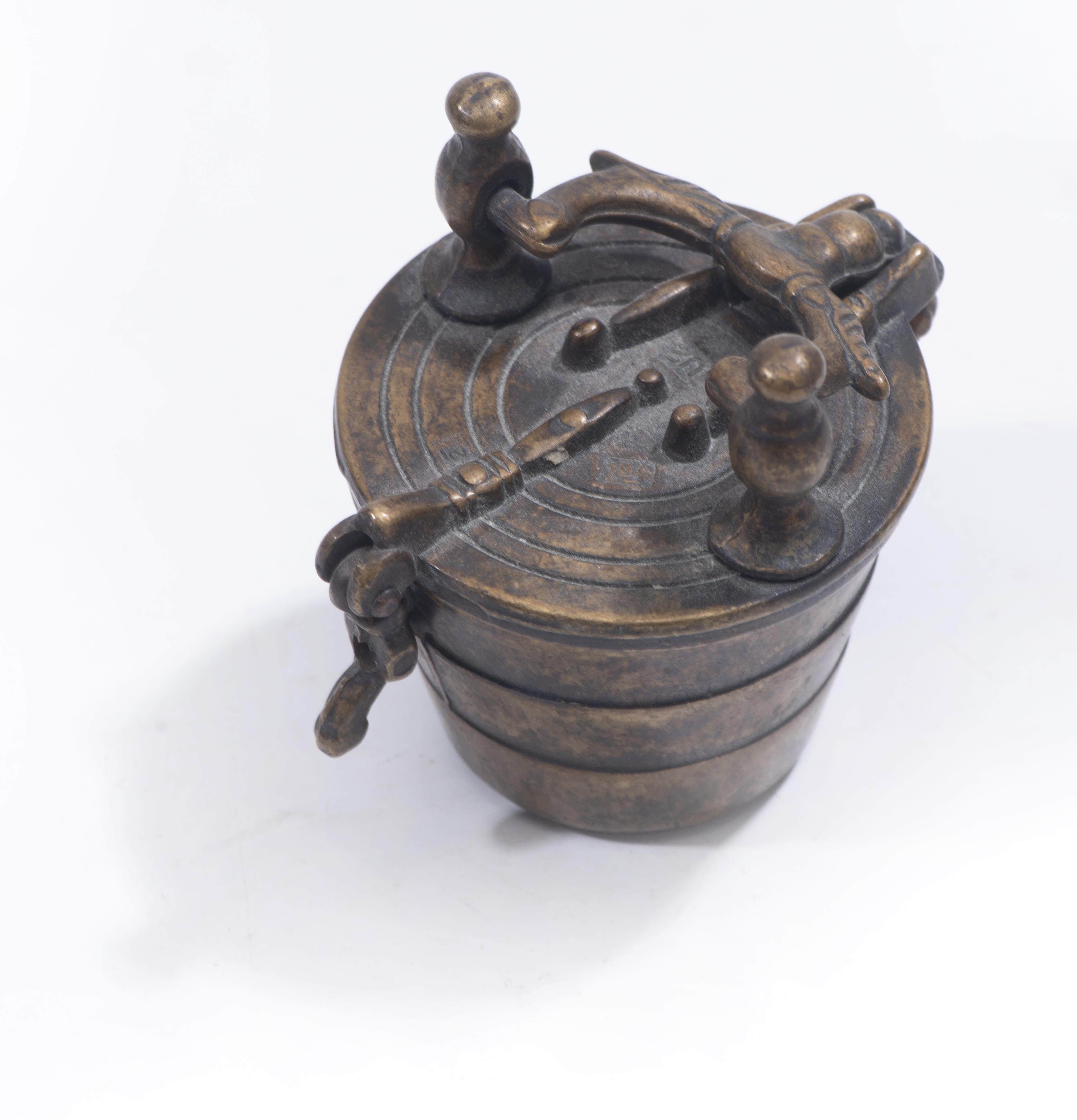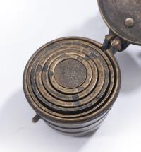 Deux boîtes de piles de poids à godets.