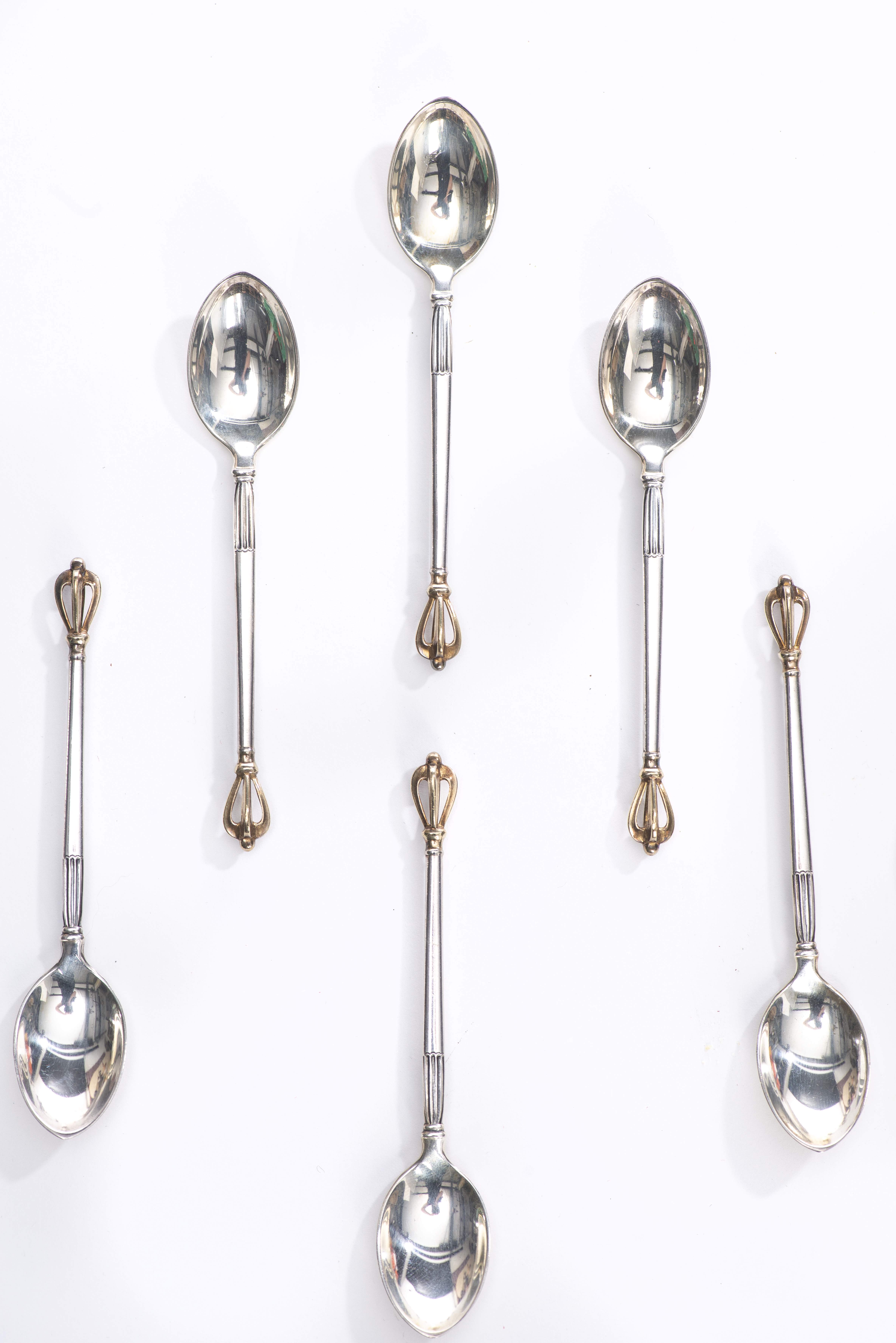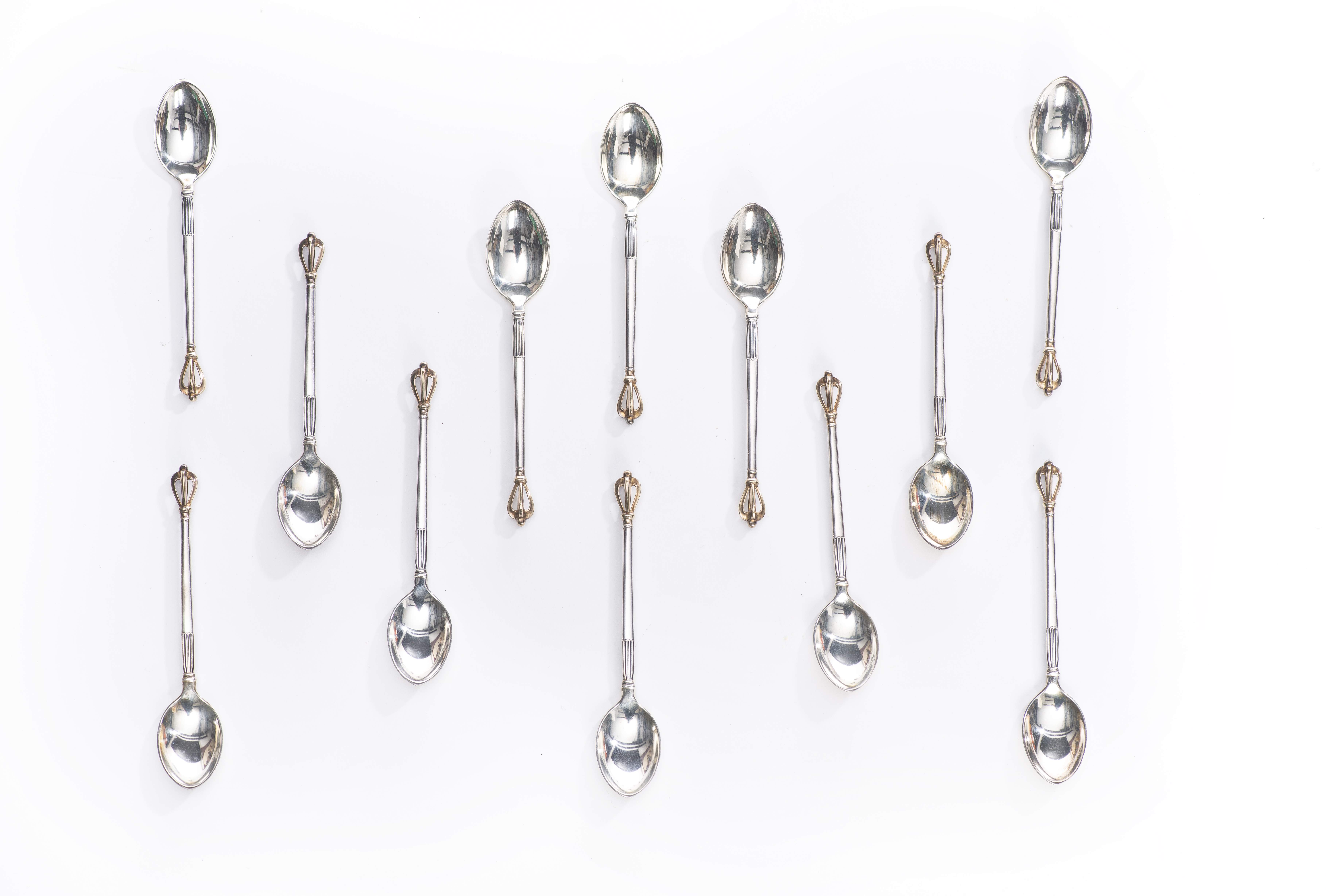 Douze cuillères à moka en argent sterling .925 et vermeil par W&S. Sorrensen Denmark.