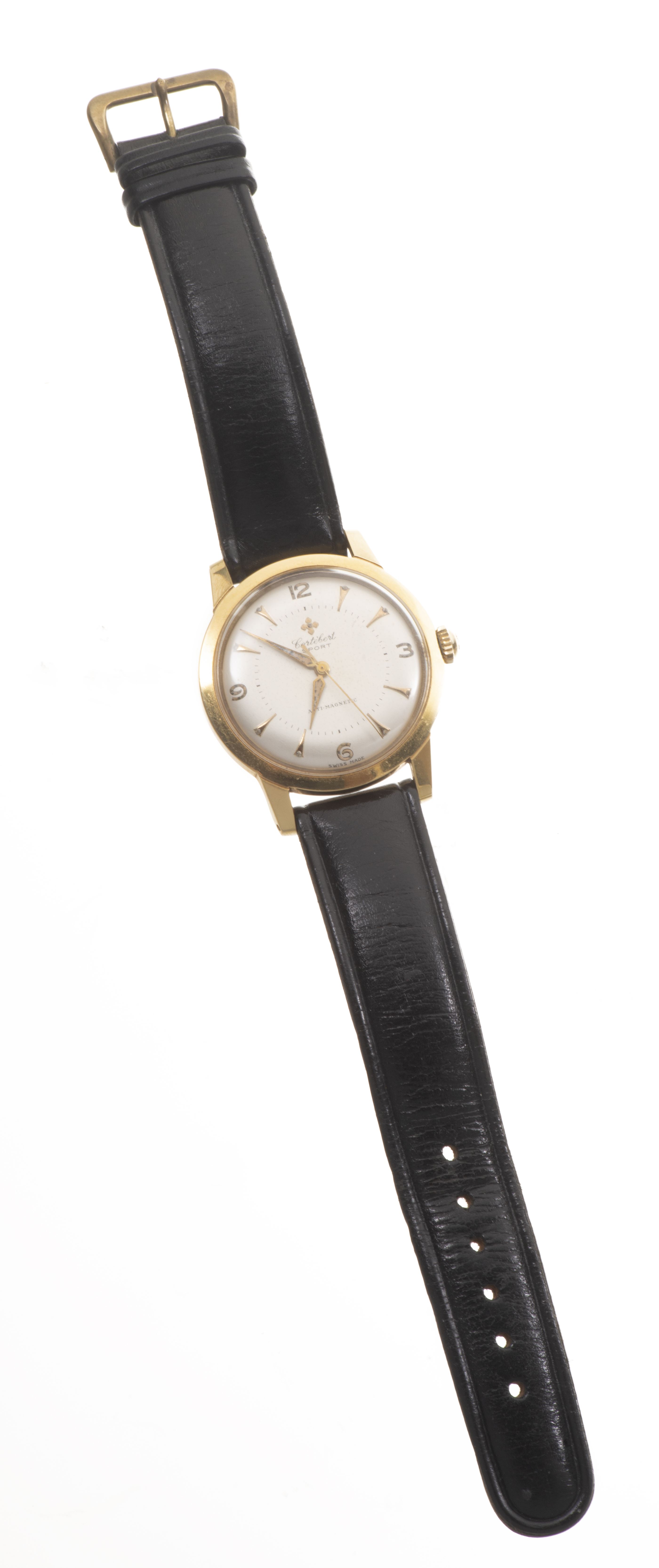 Cortébert, montre automatique en métal doré, modèle « Sport », fond en acier inoxydable. Cadran acier. N° boîte : 9501.