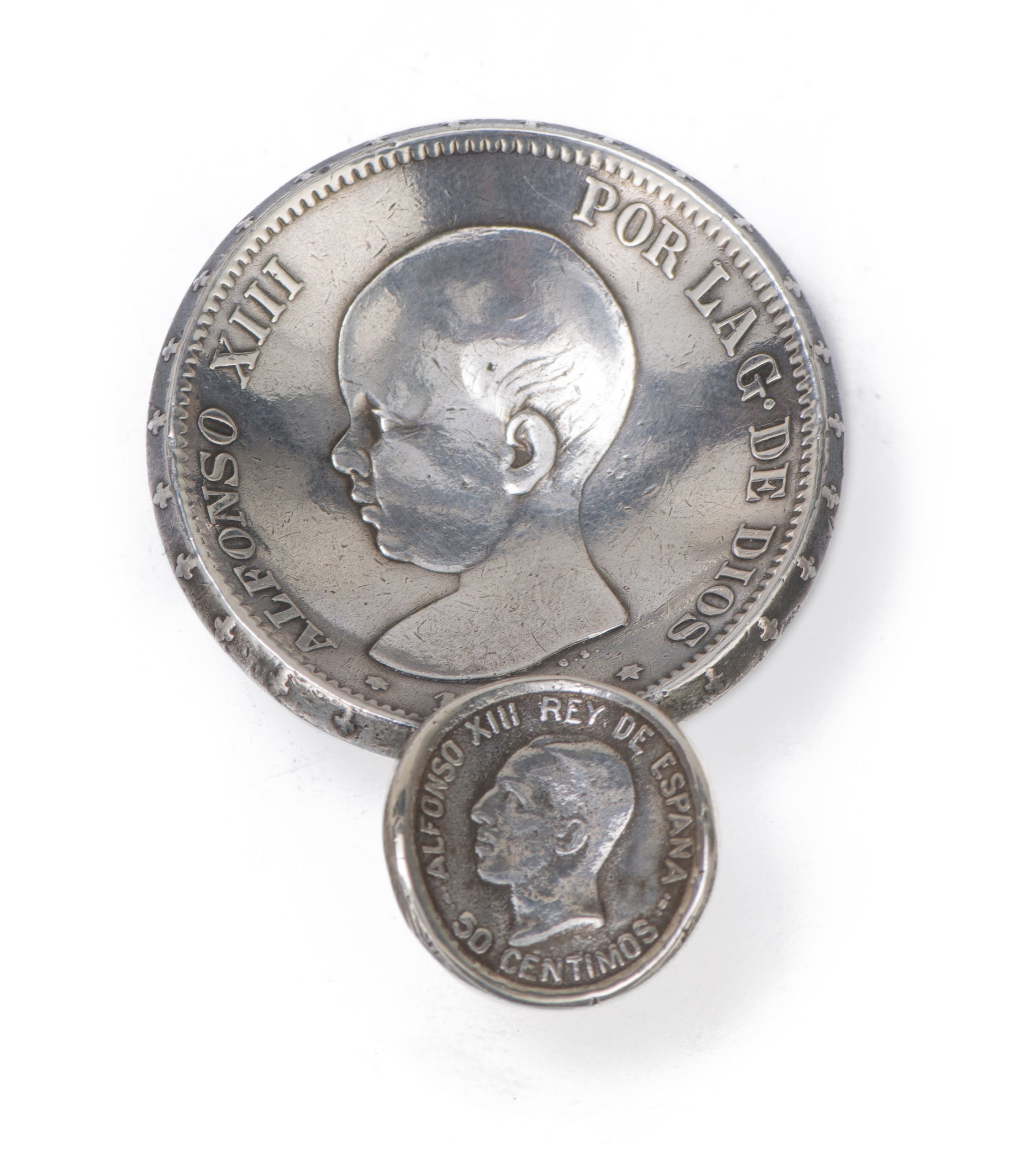 - 1 cendrier en argent constitué de 5 pesetas et de 50 centimos