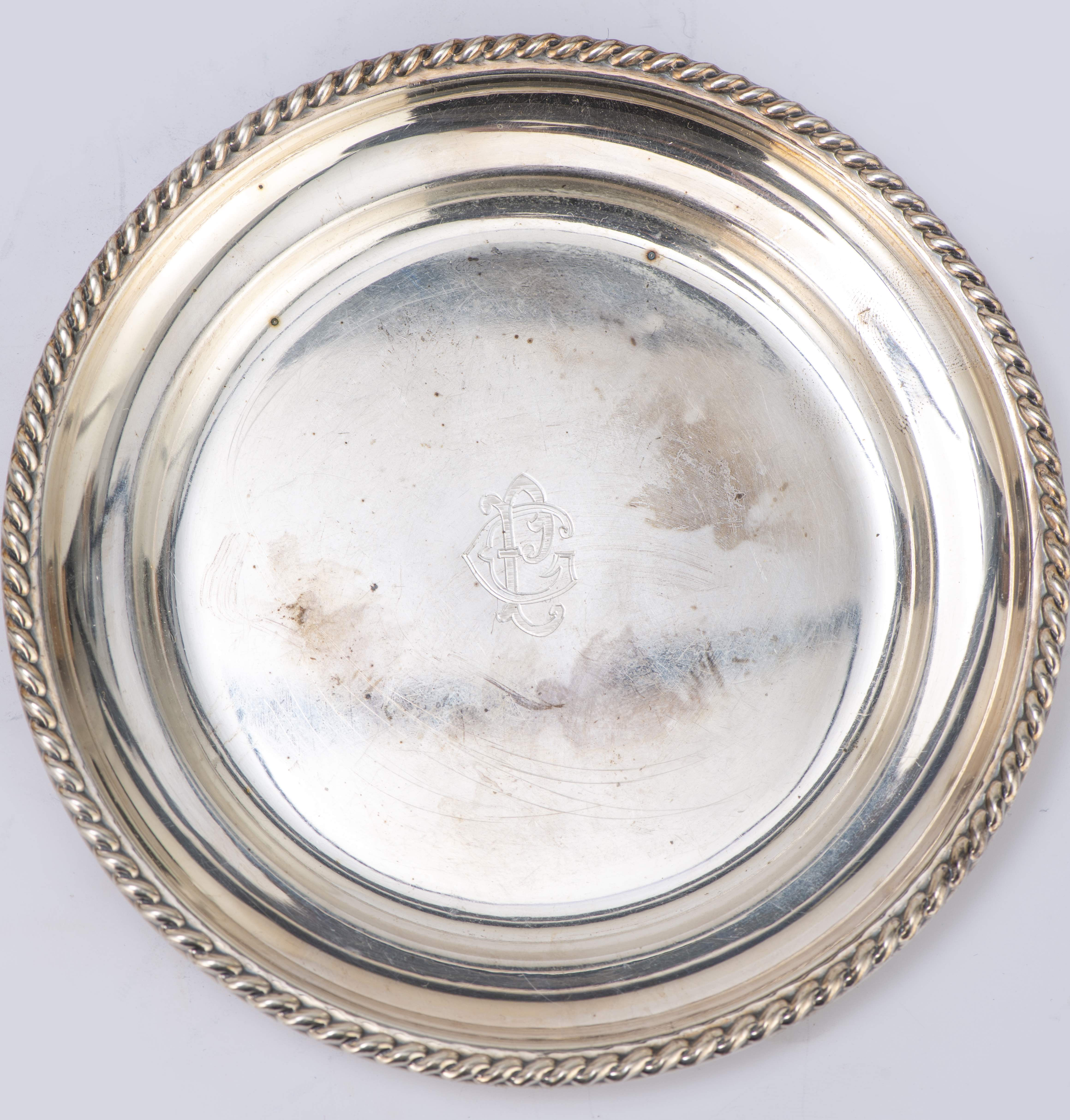 - 2 sous-bouteilles en argent allemand .925 mon PG à lèvre à motif de cordelette. D. 12.8 cm