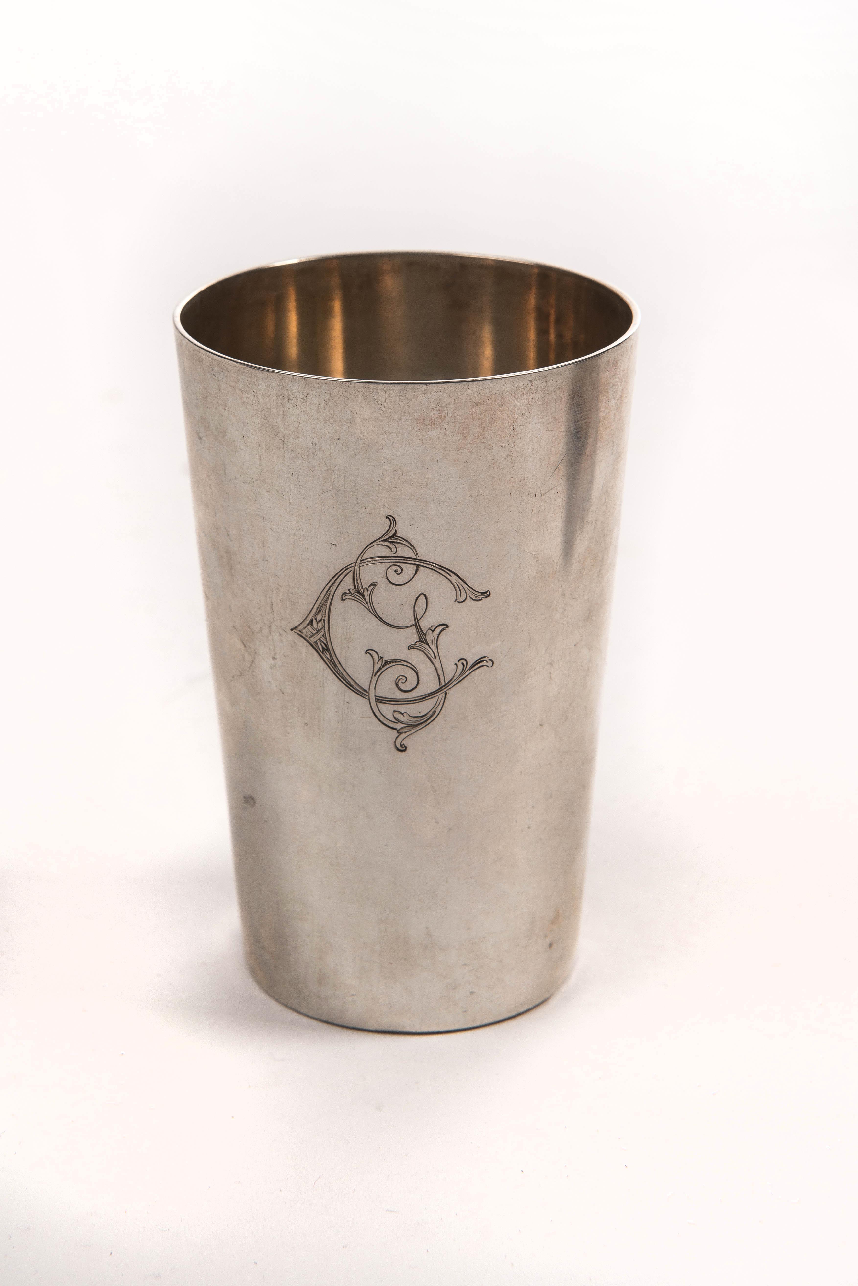 - 1 timbale monogrammée C, H. 9.7 cm & Diam. 6.2 cm