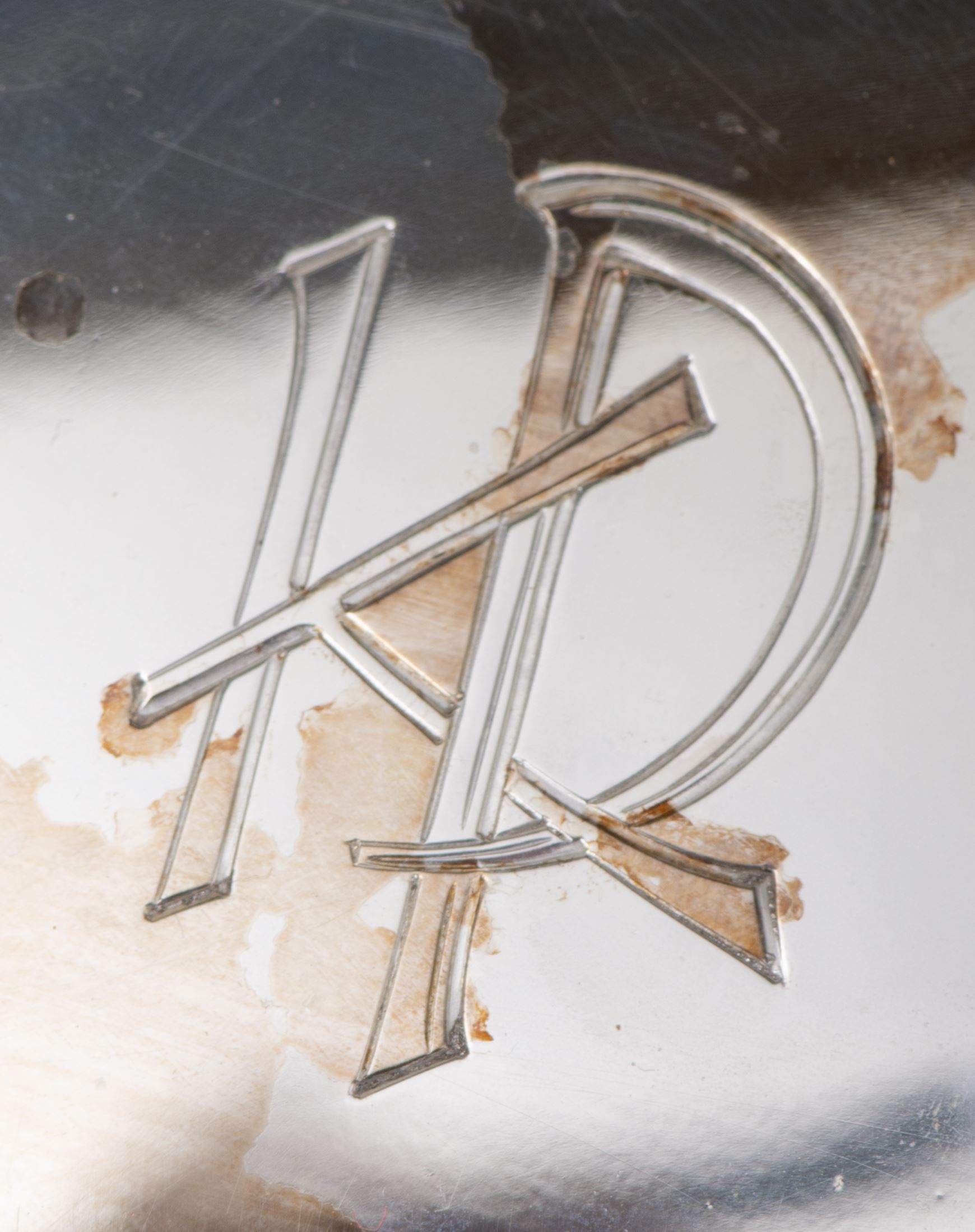 Cendrier à cigares en argent sterling .925 allemand à couvercle. Manche en poirier noirci.