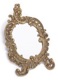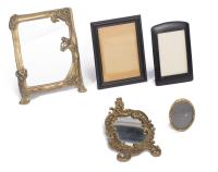 Lot comprenant trois cadres de photos en bois et métal auquel on joint un miroir de table de style rocaille en bronze et un second miroir de style Art nouveau à cadre en bronze.
