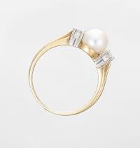 Bague en or jaune et blanc .750 avec une perle et 2 diamants