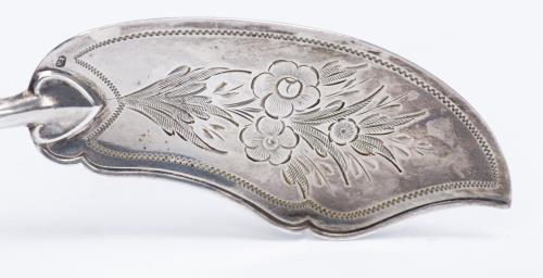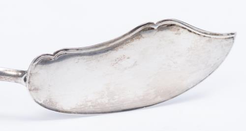 -une petite pelle à poisson en argent .812 d'Autriche Hongrie à décor gravé de feuilage, manche en os, dans son écrin. Poids total : 21 g