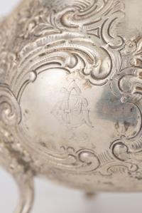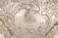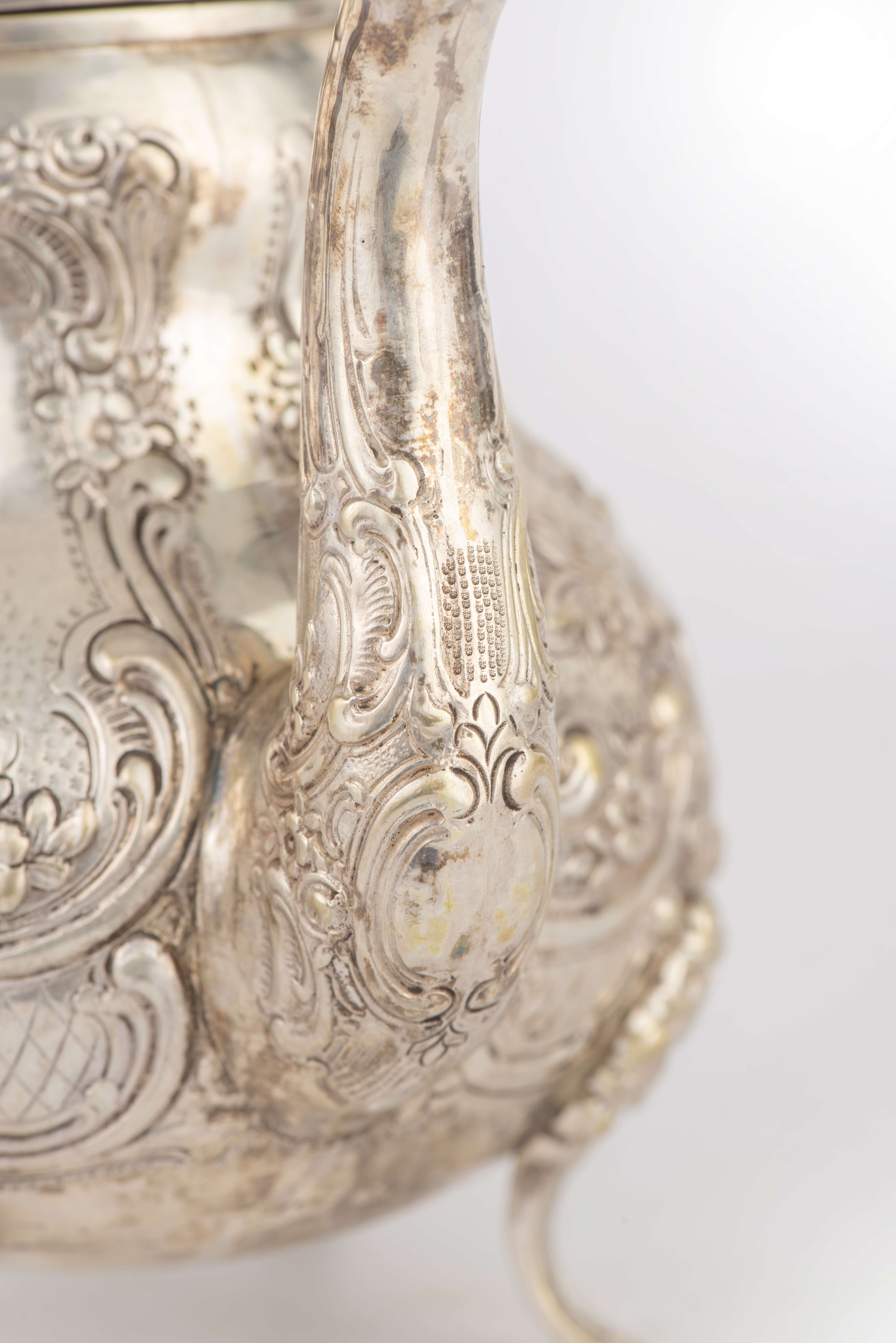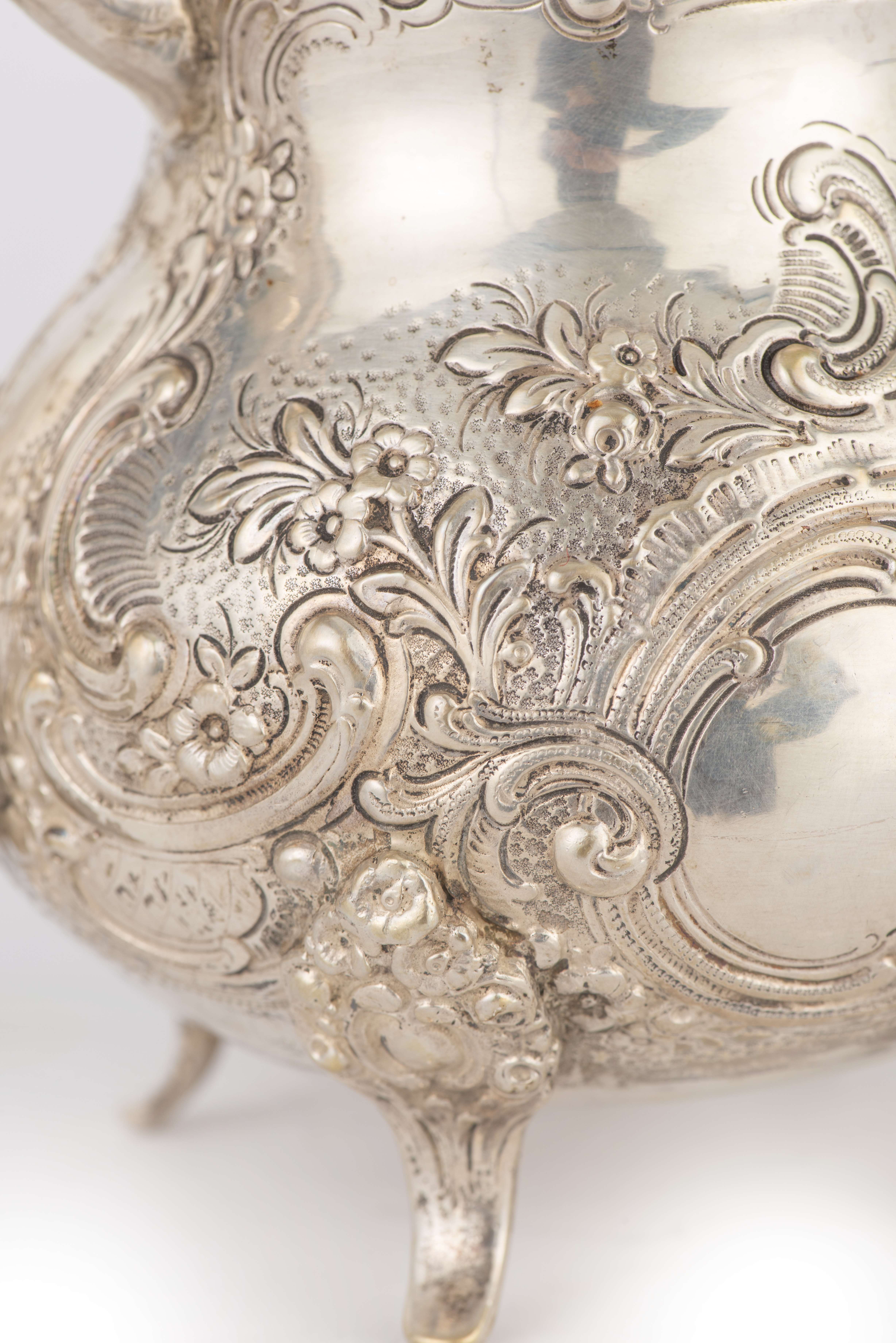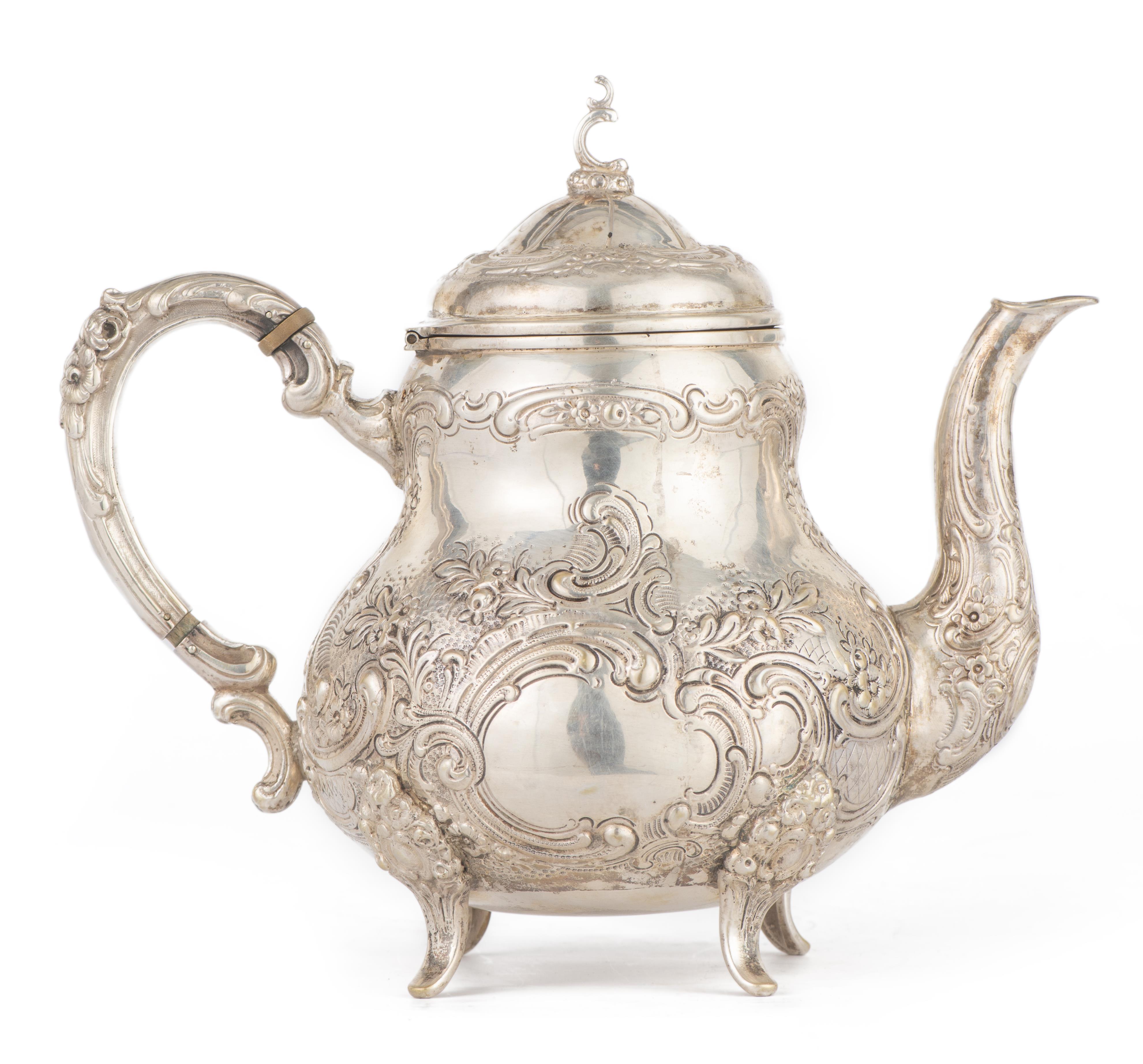Théière en argent .800 allemand à décor en repoussé de style rocaille à fleurs.