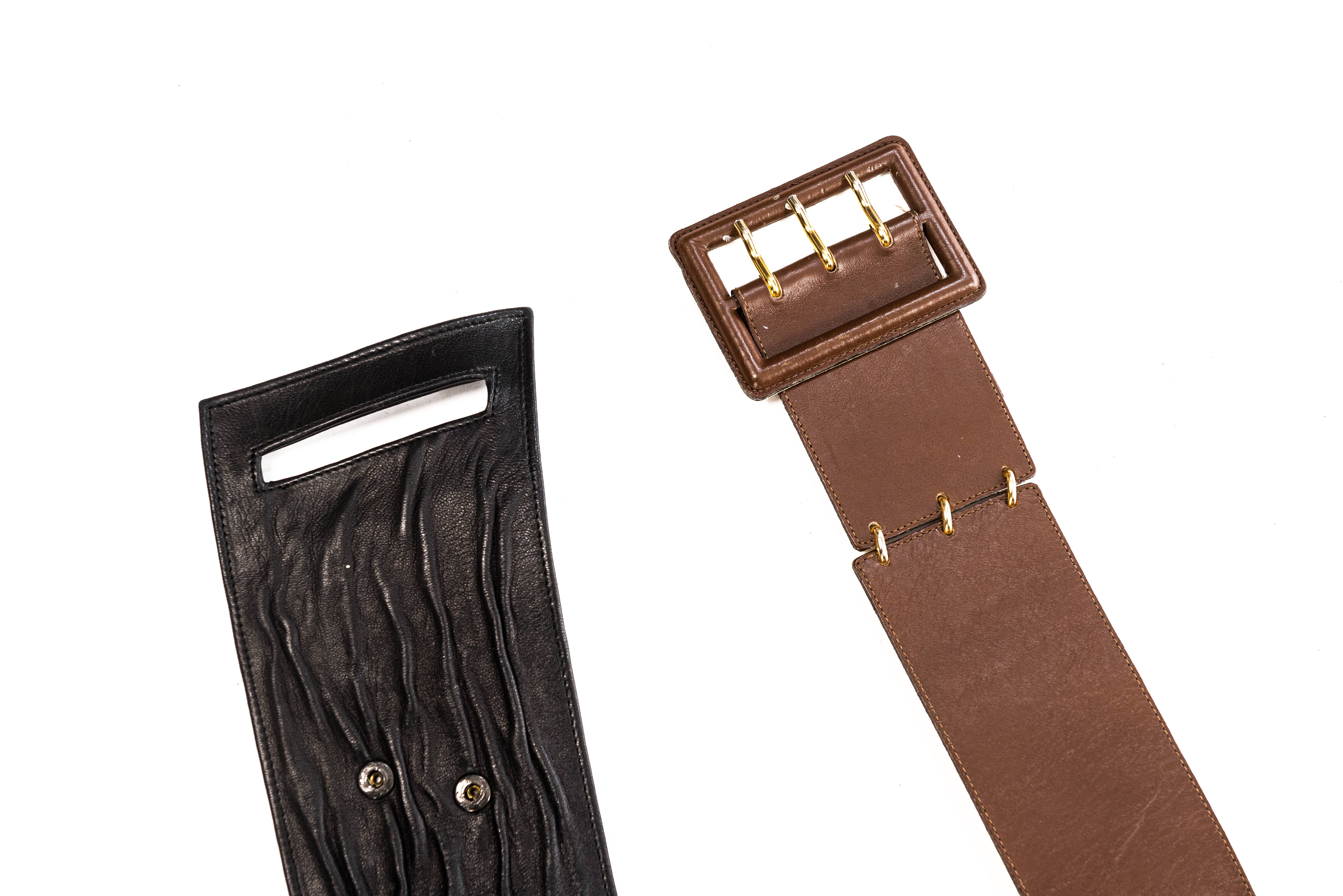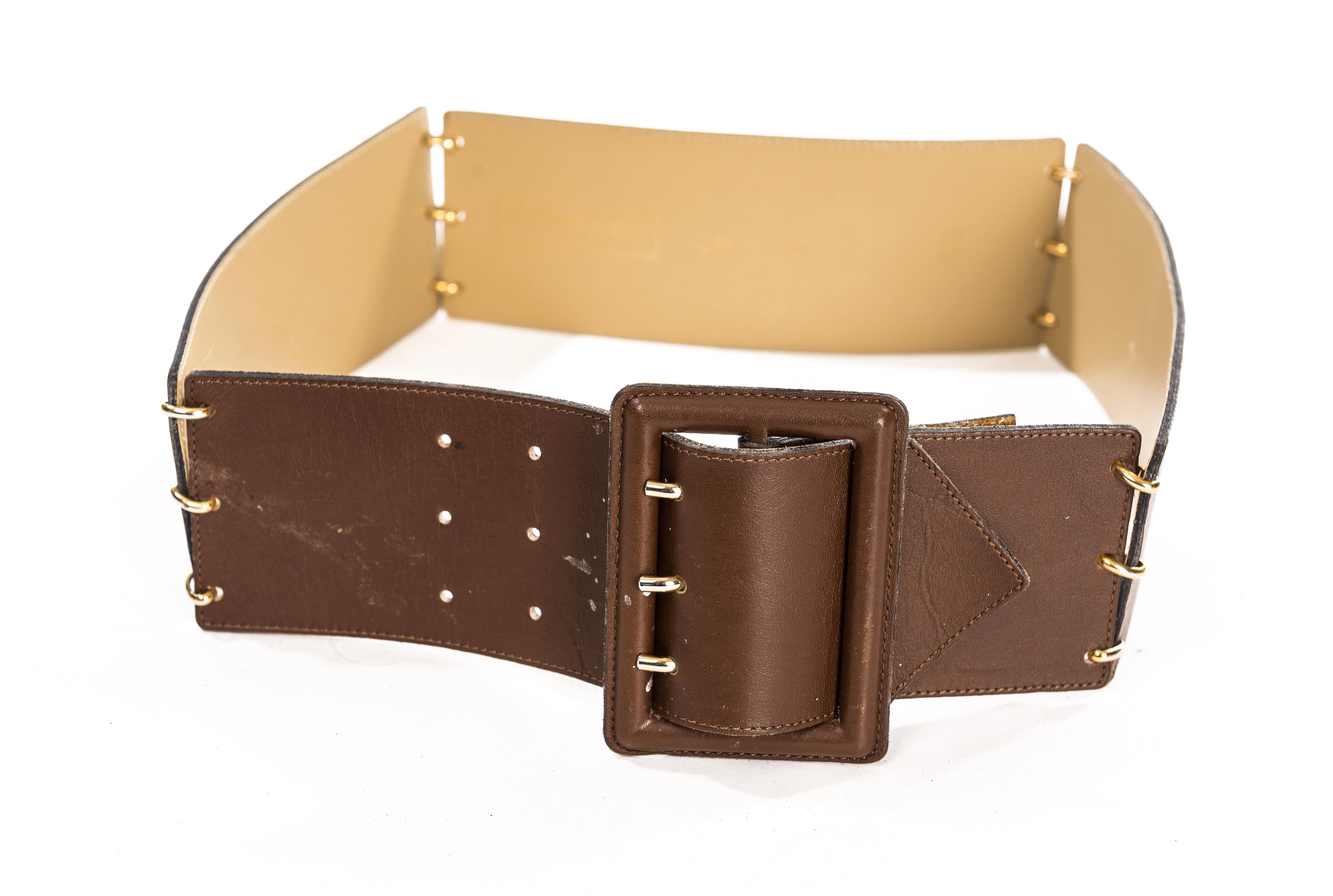 - Yves-Saint-Laurent, ceinture en cuir brun, L.??