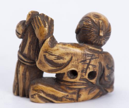 - 1 homme tenant une outre. H. 4x3.5 cm.