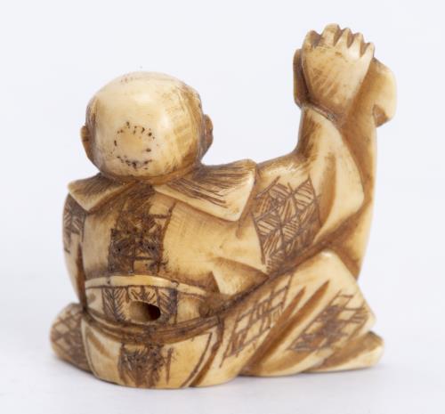 - 1 homme couché posant la main sur un cercle. H .1.5x5 cm.