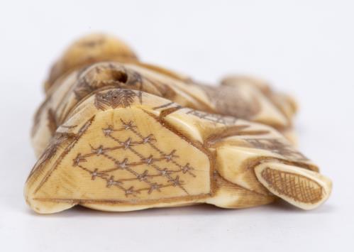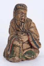 - 1 homme accroupi tenant un fagot de bois. H.3x3 cm