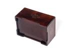 Boîte en bois incrustée de fil métallique à décor sur le couvercle d'un médaillon central contenant un oiseau sur une branche et des nuages dans les coins, avec nœuds celtiques sur les parois.