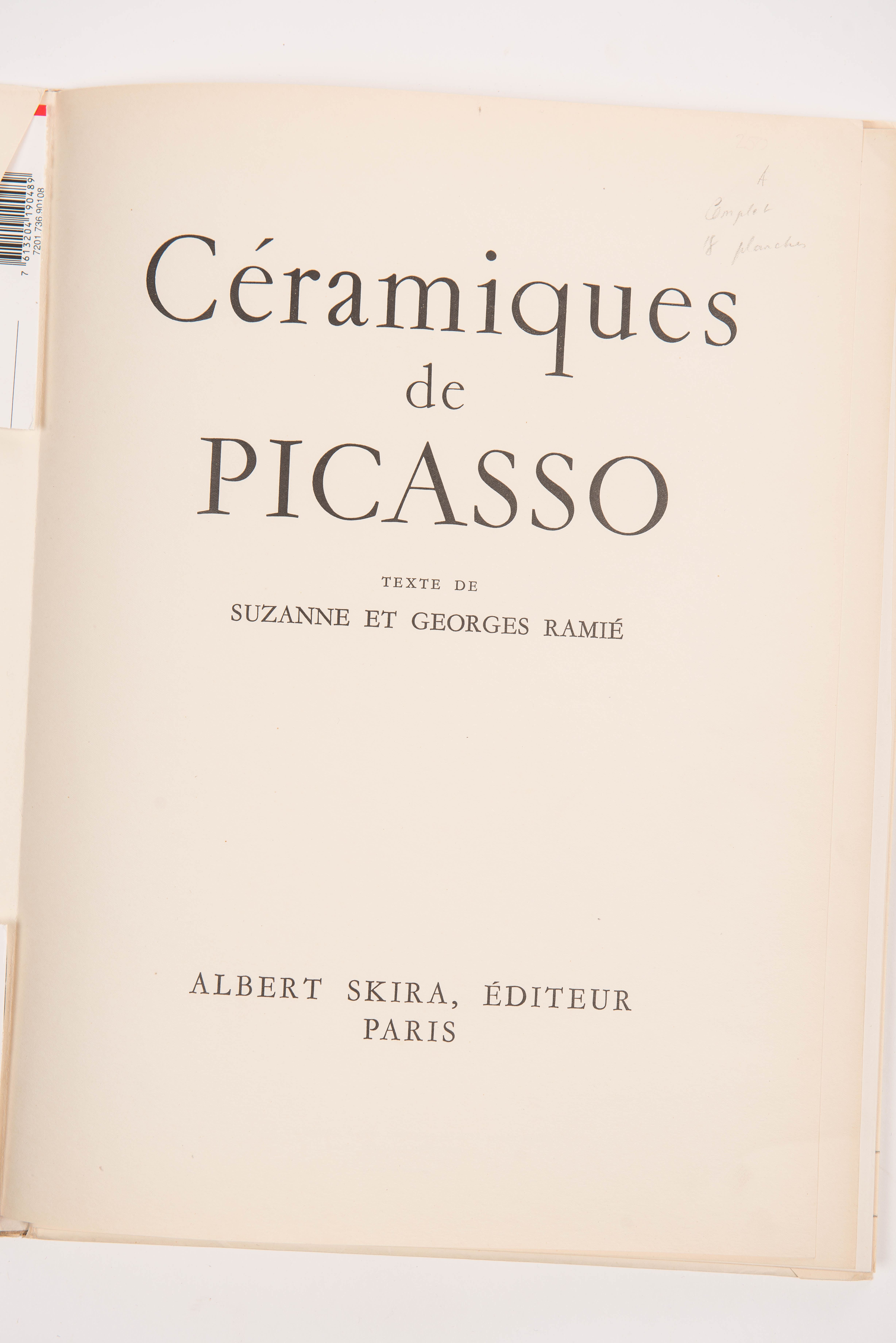 Picasso.- Ramie (S. et G.), Céramiques de Picasso. Genève, Skira, 1948