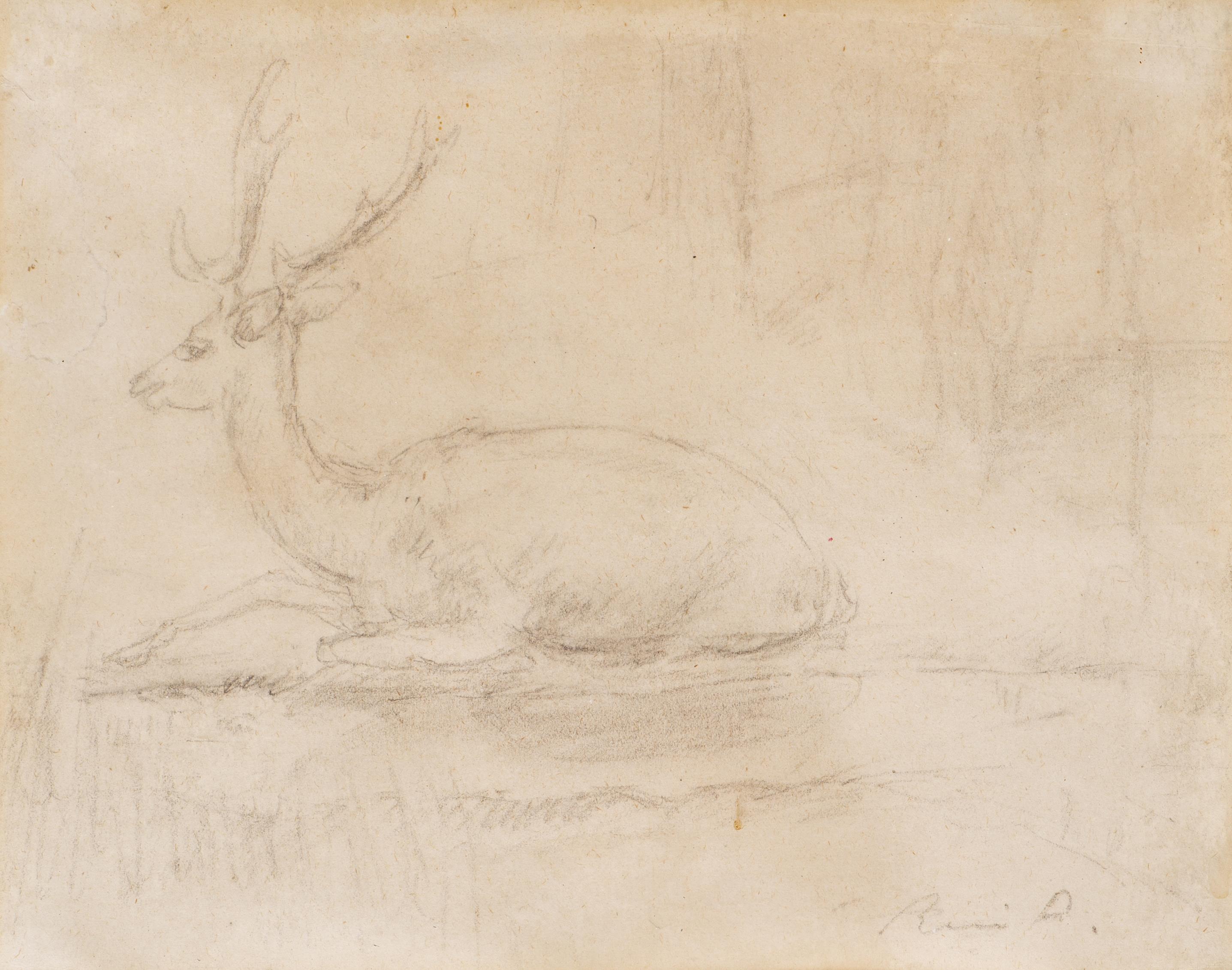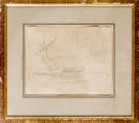 René Victor Auberjonois (1872-1957), "Le cerf", dessin à la mine de plomb, sbd.