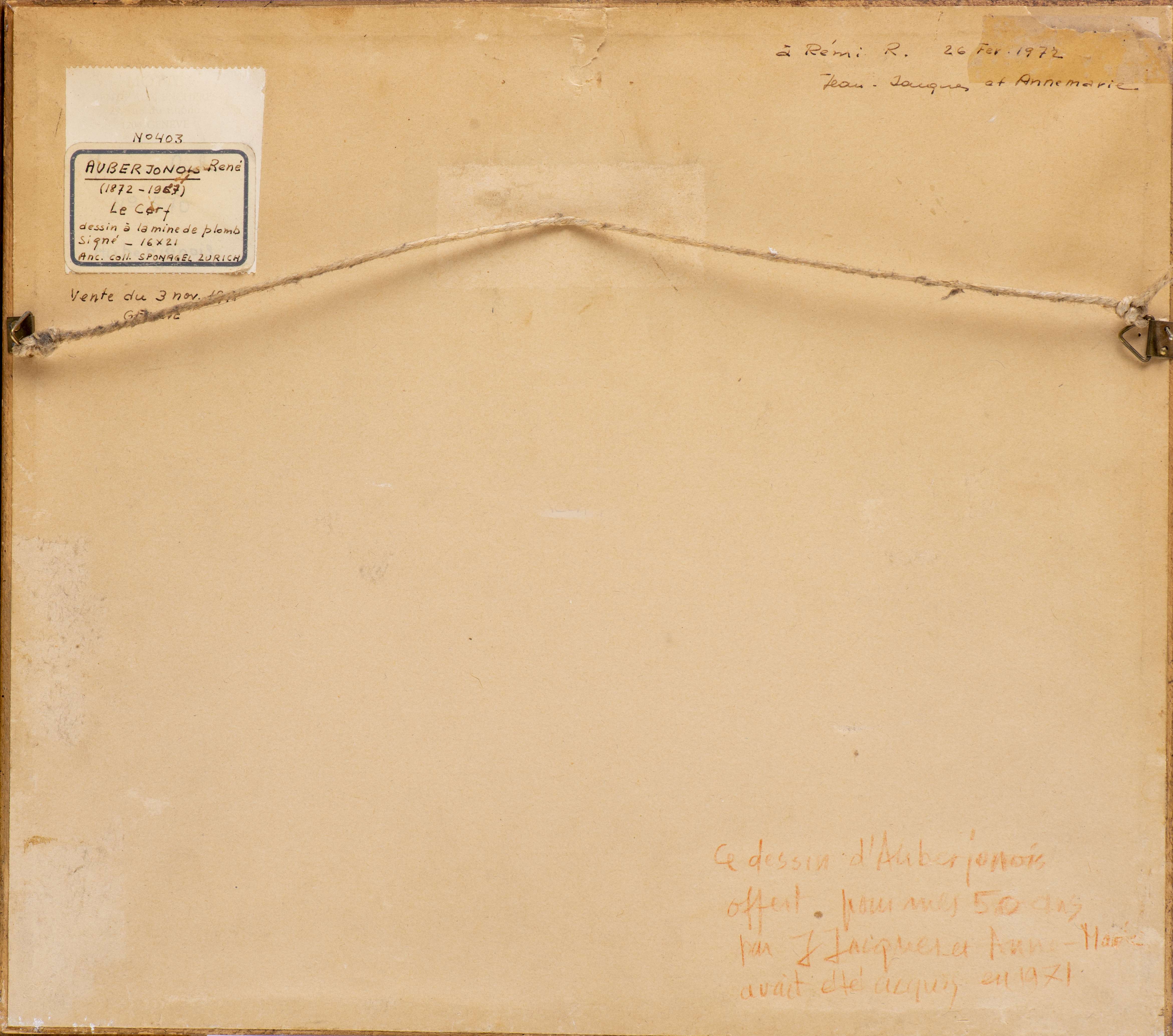 Etiquette au dos mentionnant Ancienne collection Sponagel Zurich, n°403 d'une vente du 3 novembre 1971 à Genève.