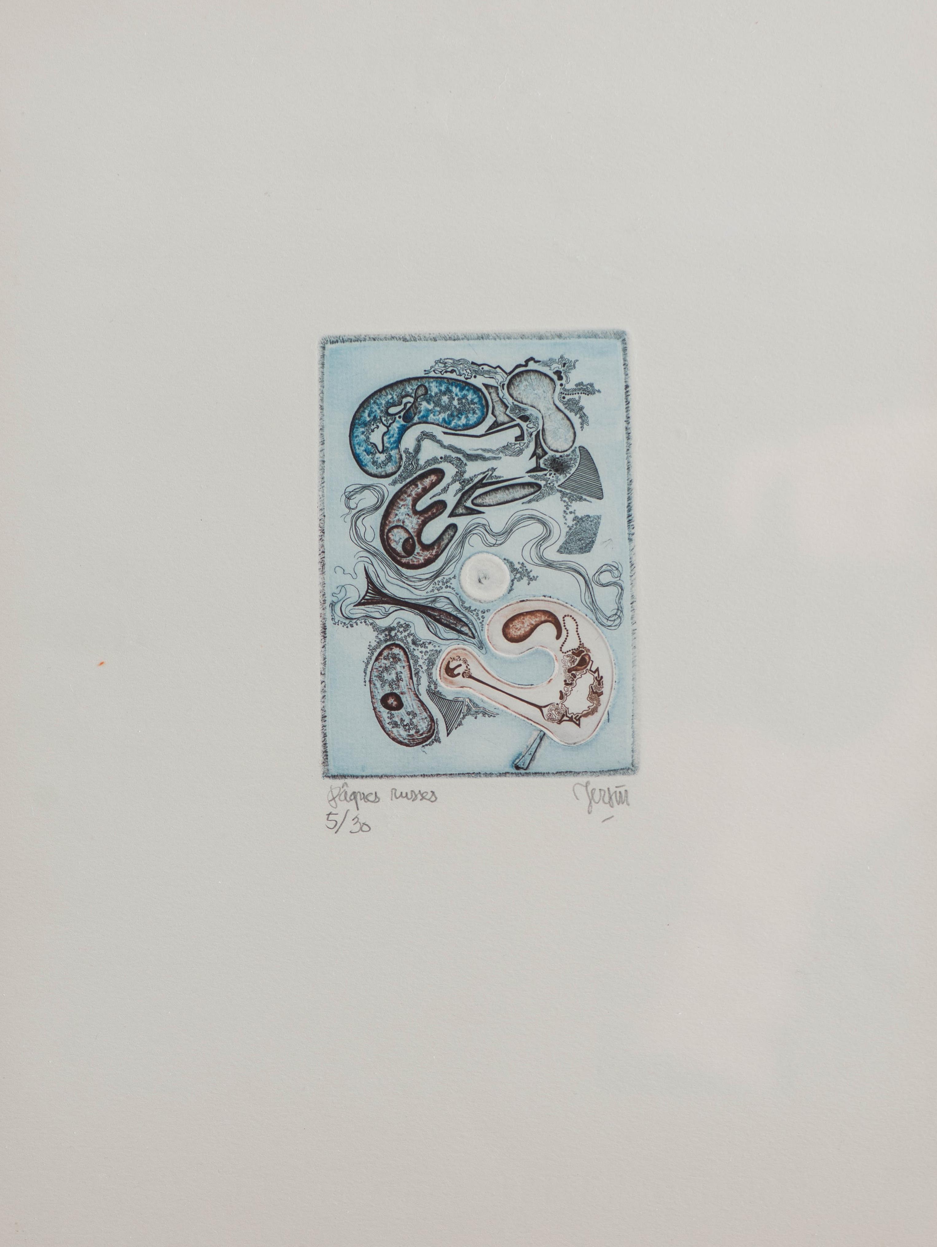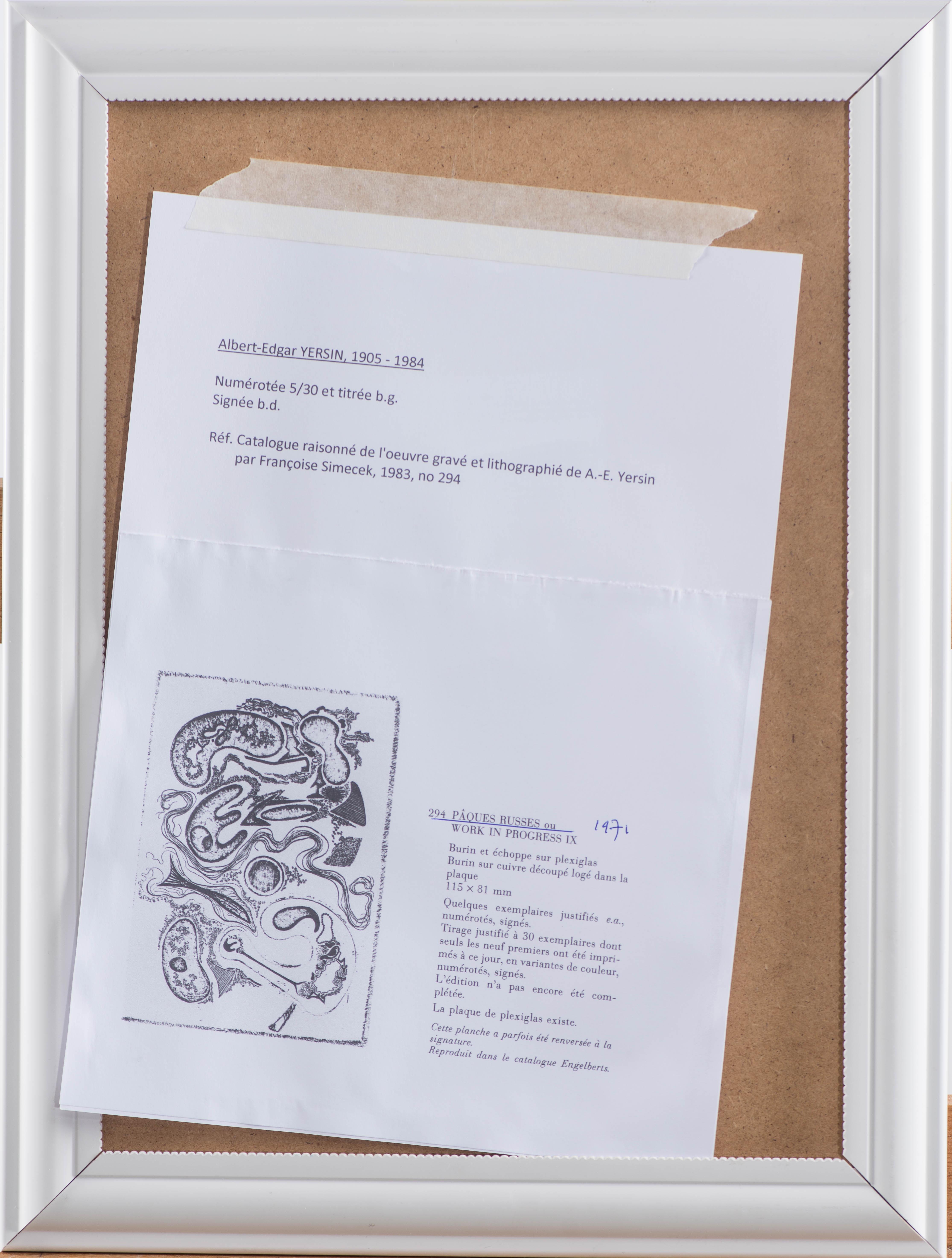 Albert-Edgar Yersin (1905-1984), "Pâques russes ou Work in progress IX" 1971. Burin sur cuivre. Tirage n°5/30, titre en bas à gauche et signée en bas à droite.