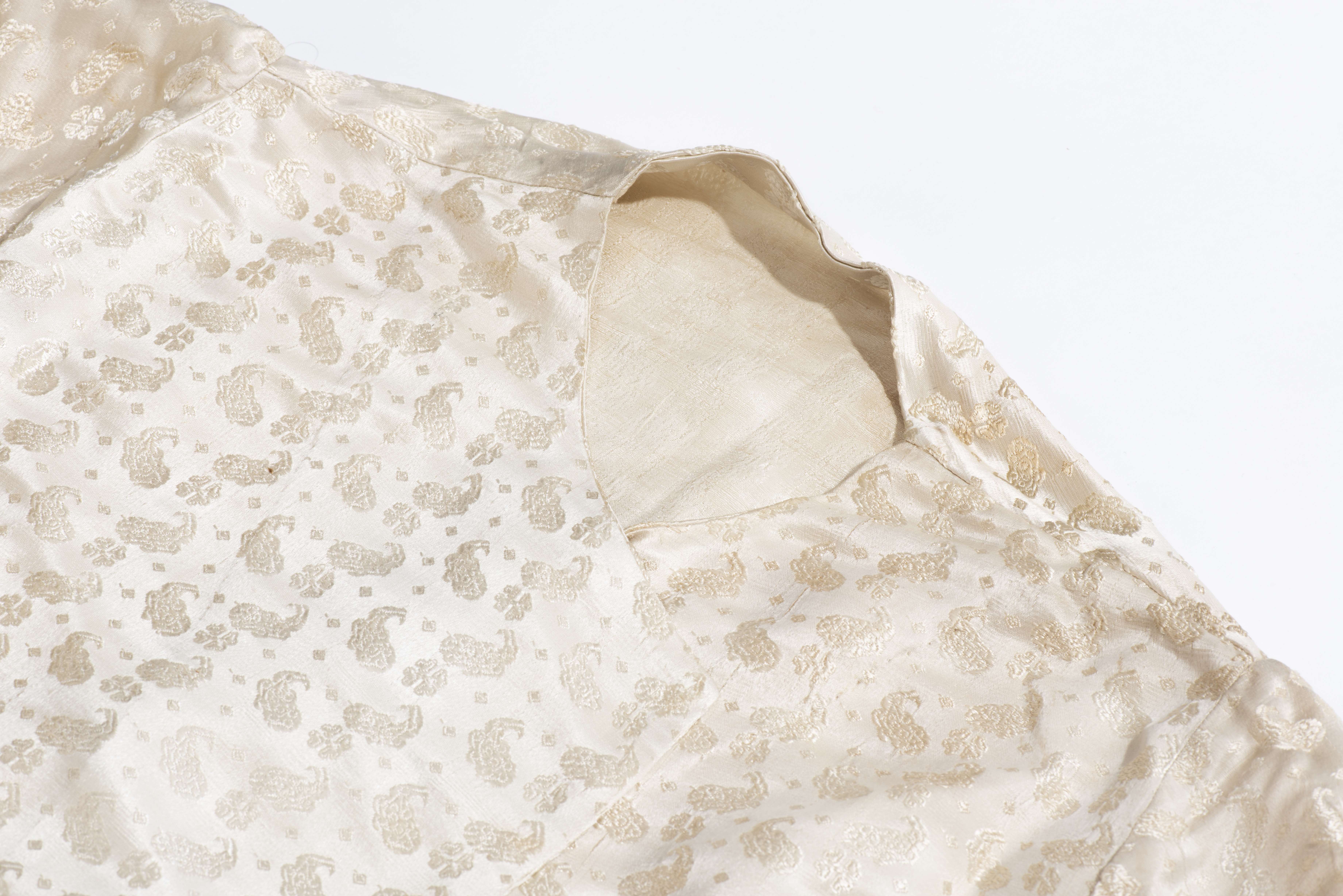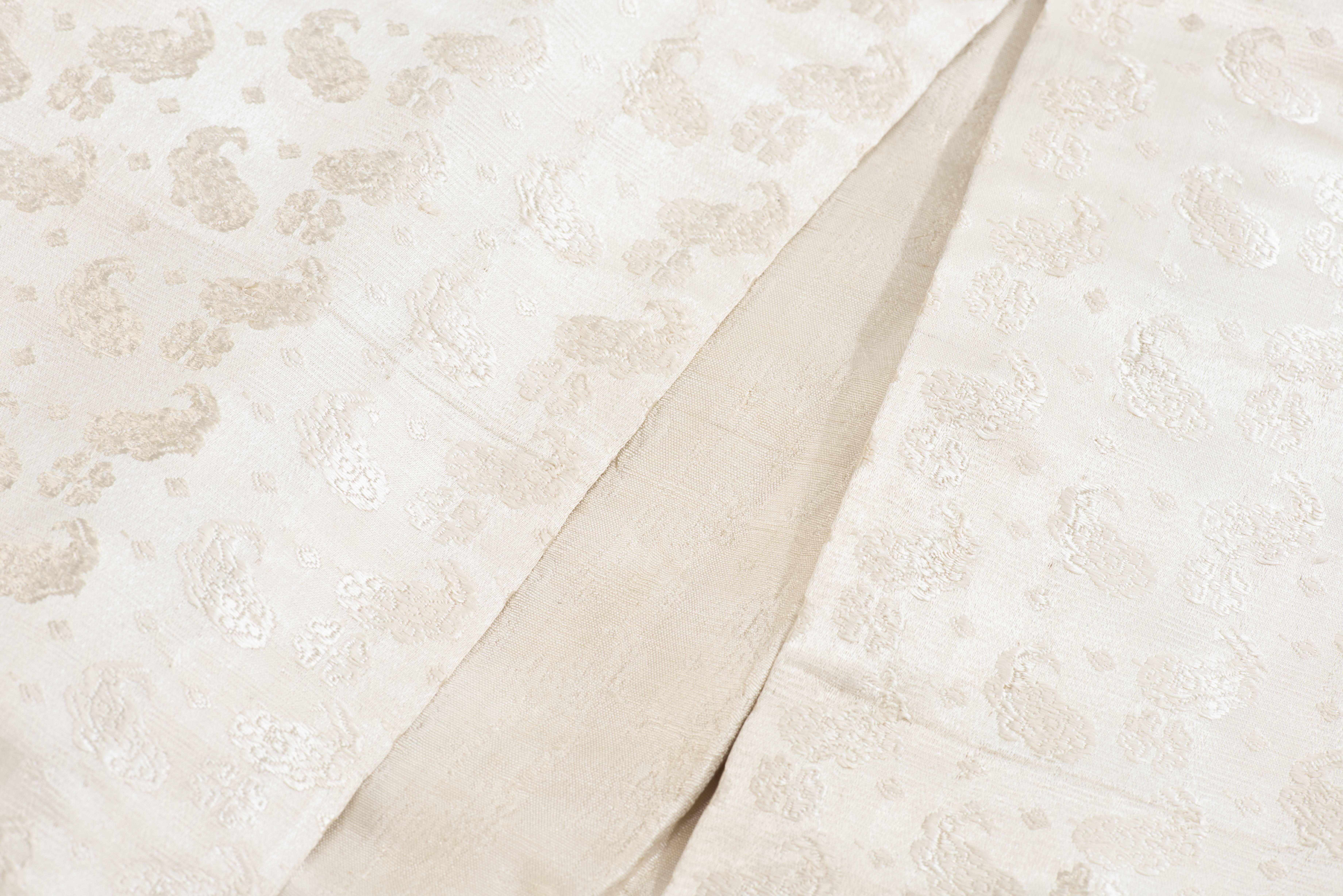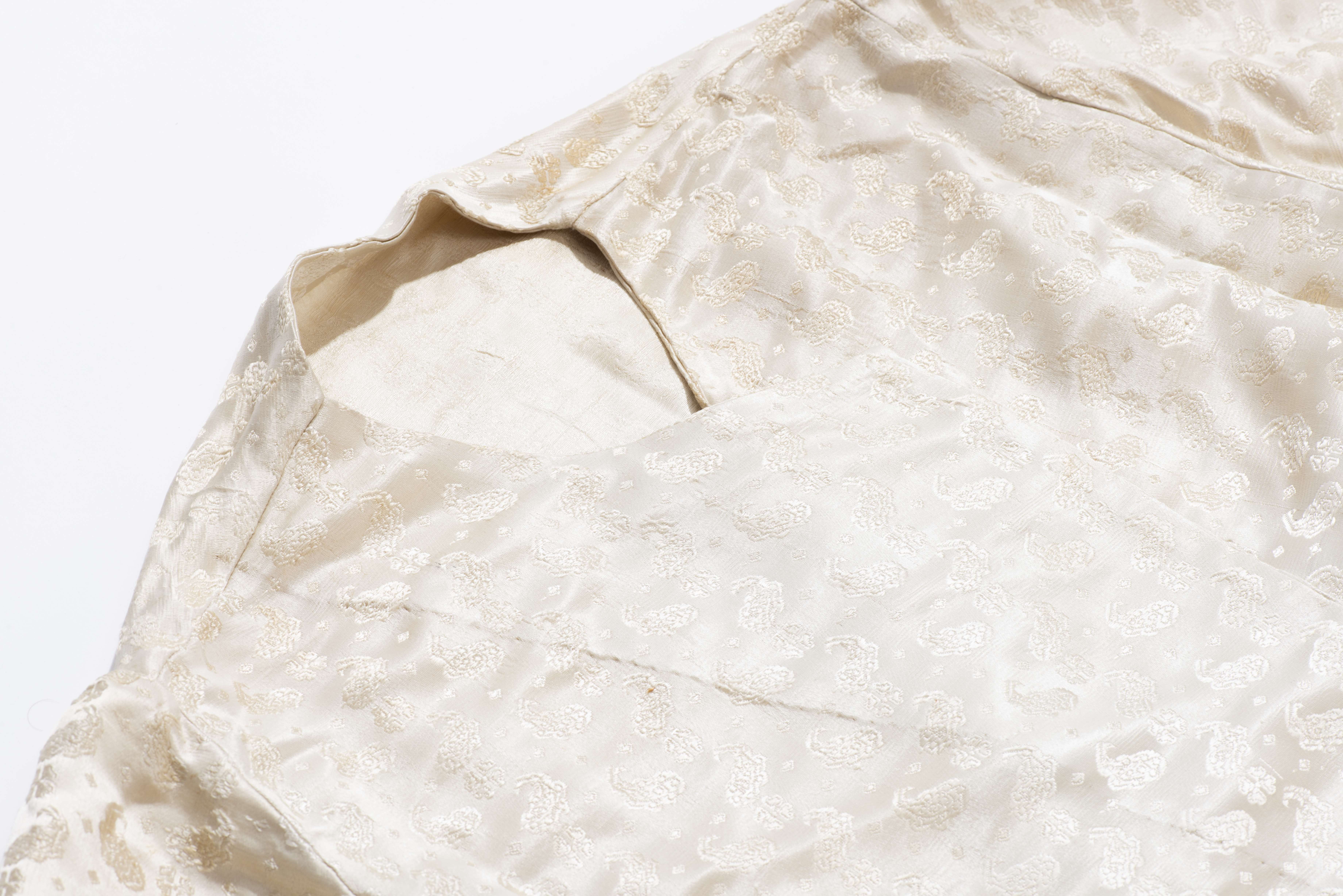 Kimono chinois en soie écru à décor de nuages.