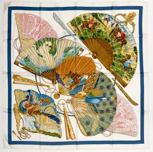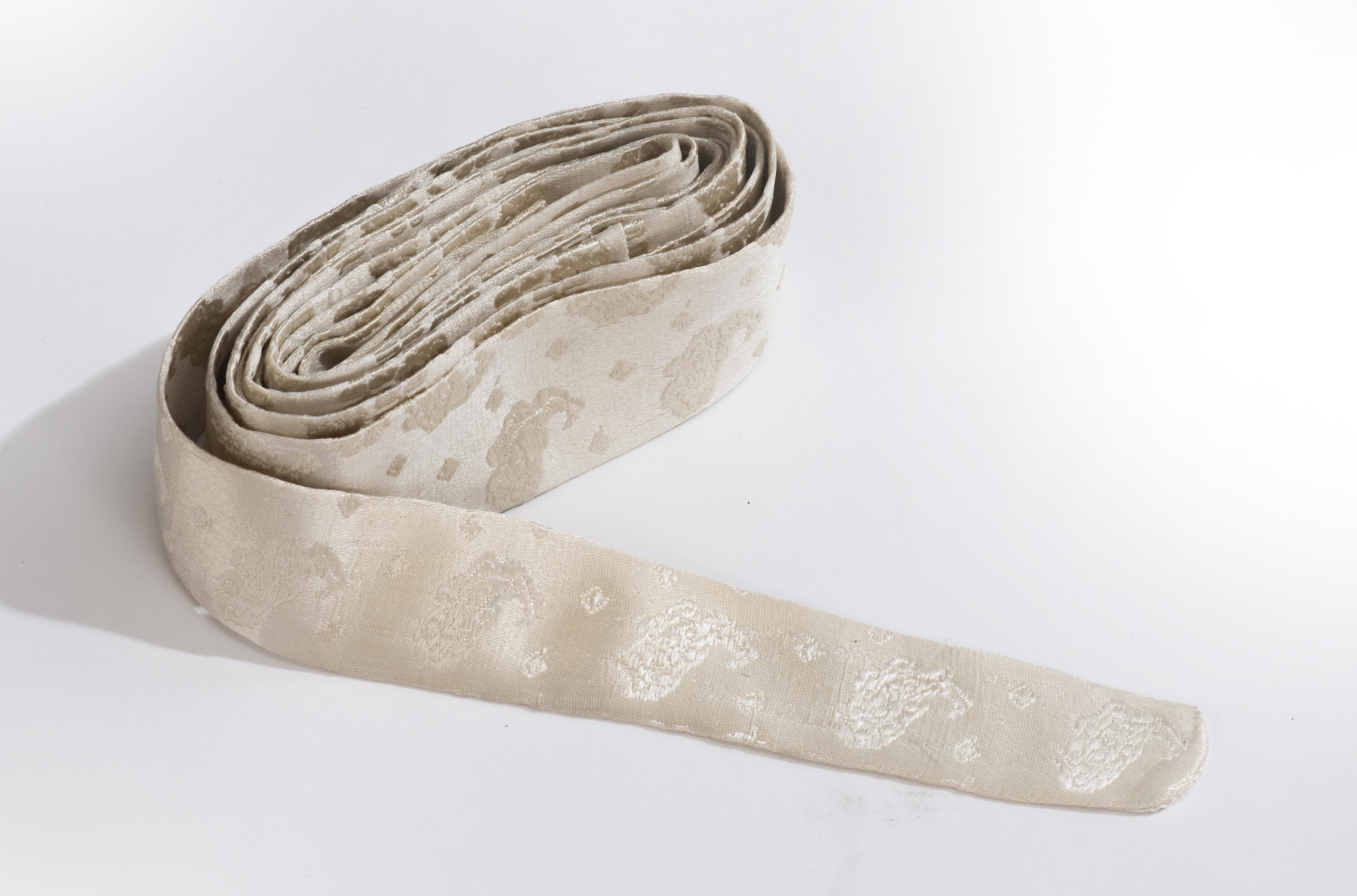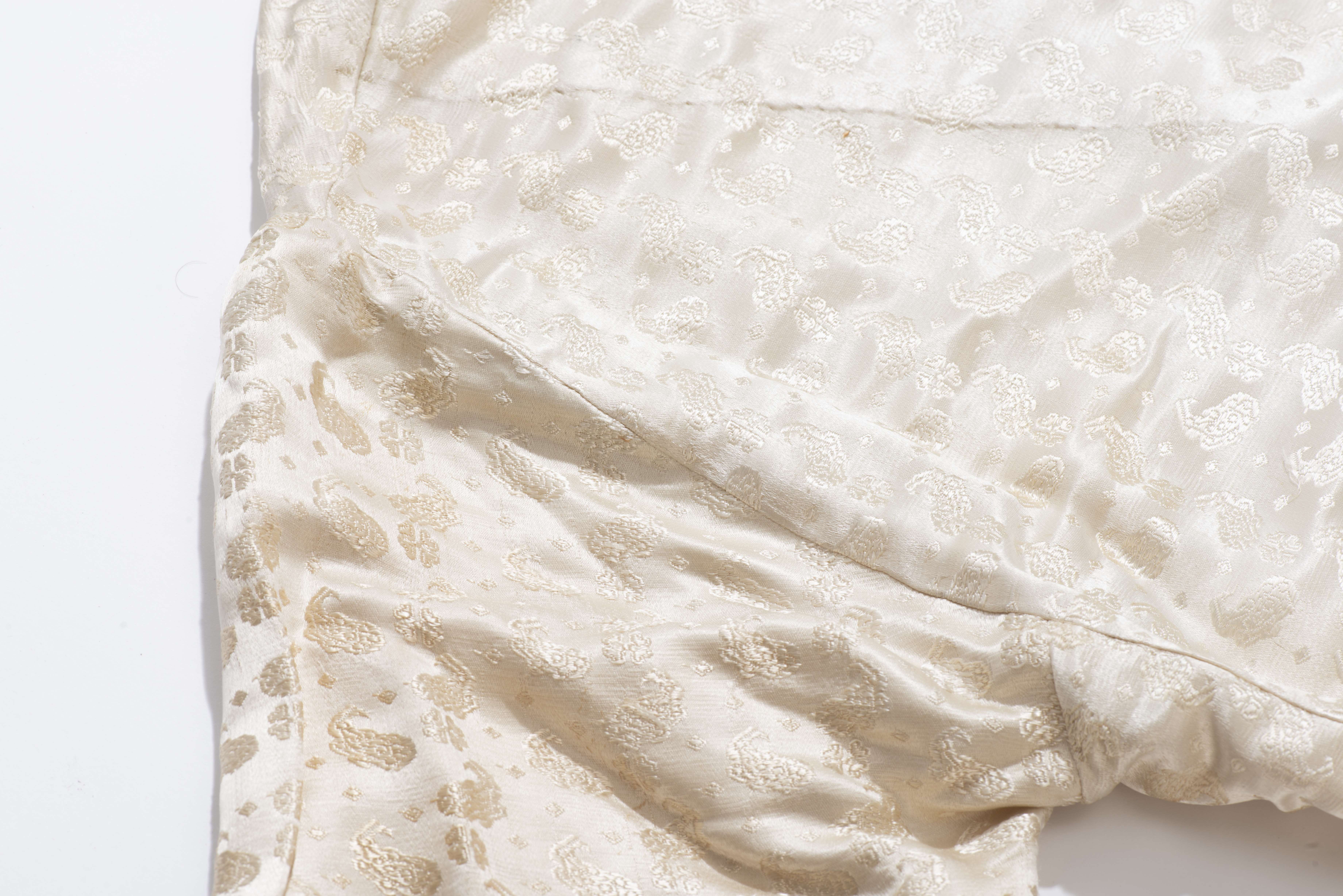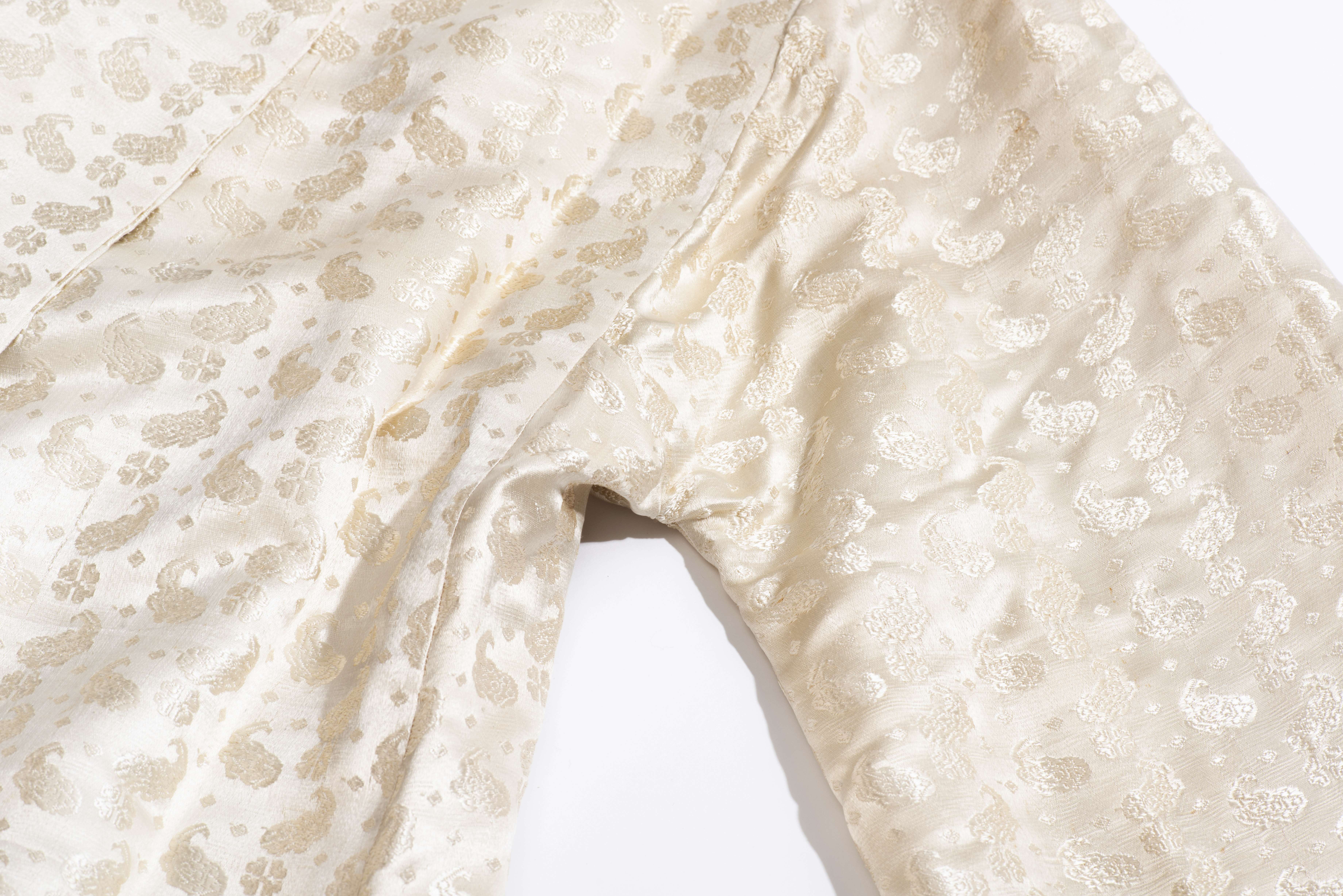 Kimono chinois en soie écru à décor de nuages.