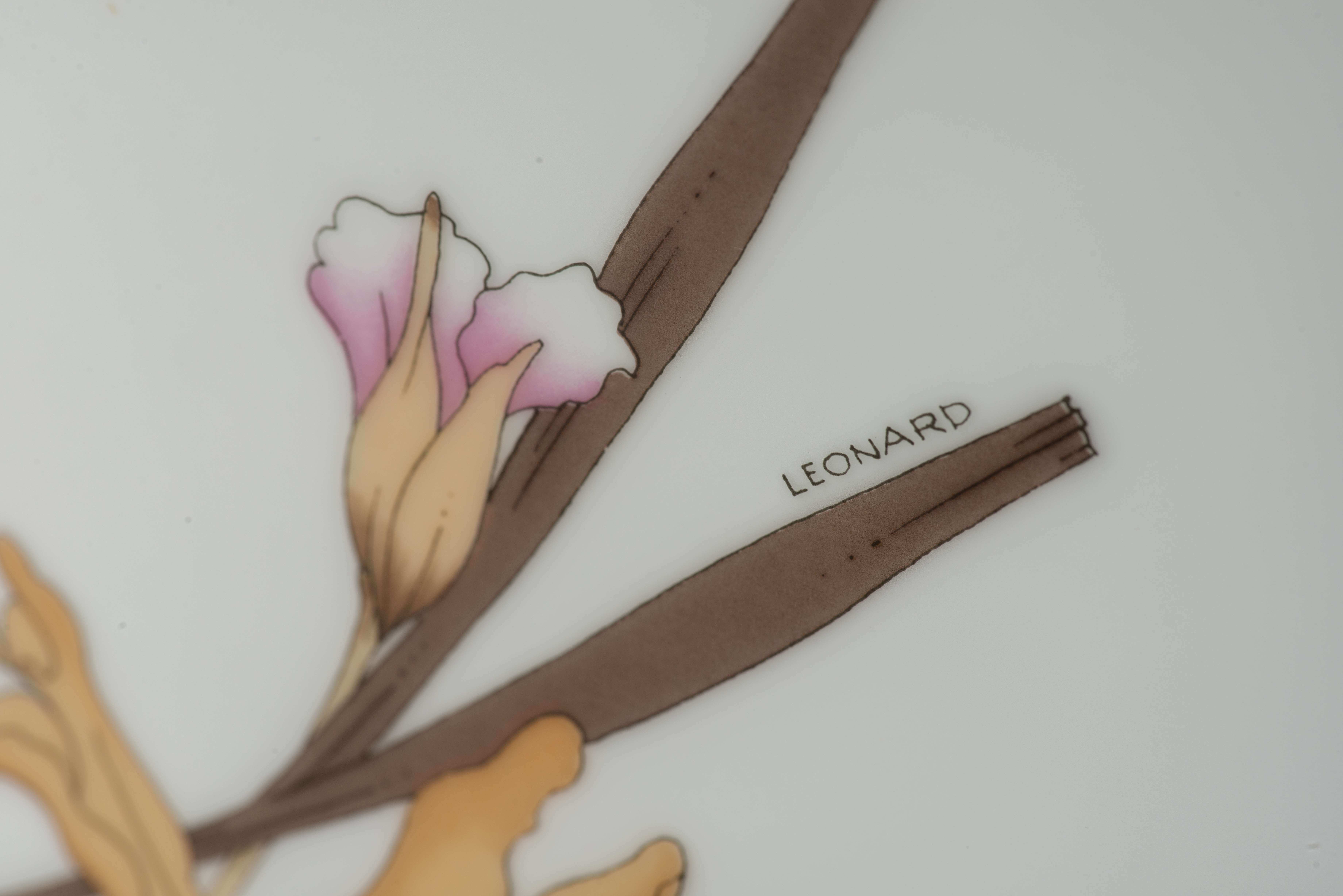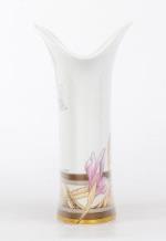 Léonard Paris, vase cornet en porcelaine à décor de fleurs "Negresco", section ovale et lèvre évasée, par Hutschenreuther Germany, signé sous la base et dans le décor et numéroté 36 sous la base.