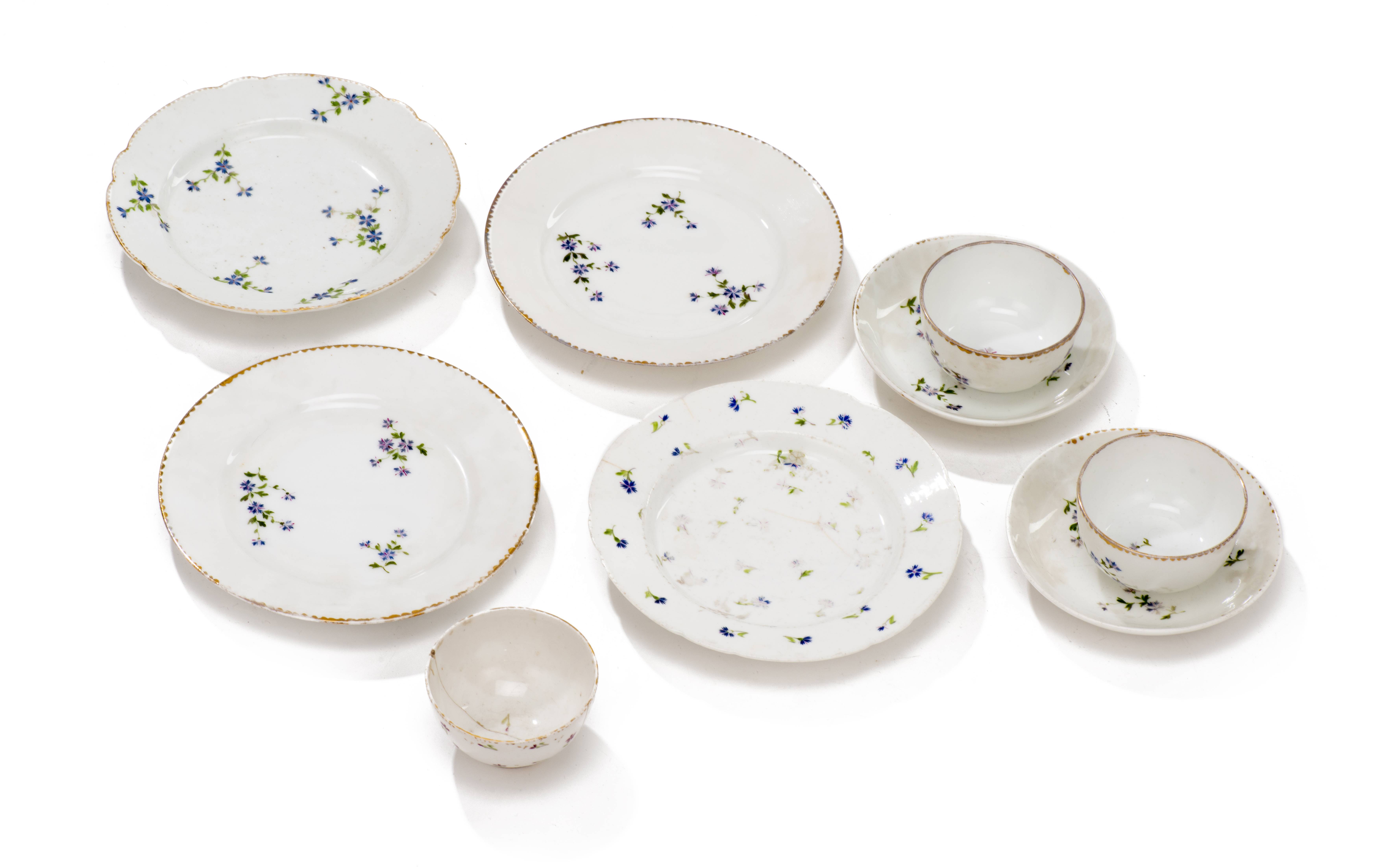 4 assiettes, 2 coupelles et 3 bols en porcelaine de Nyon