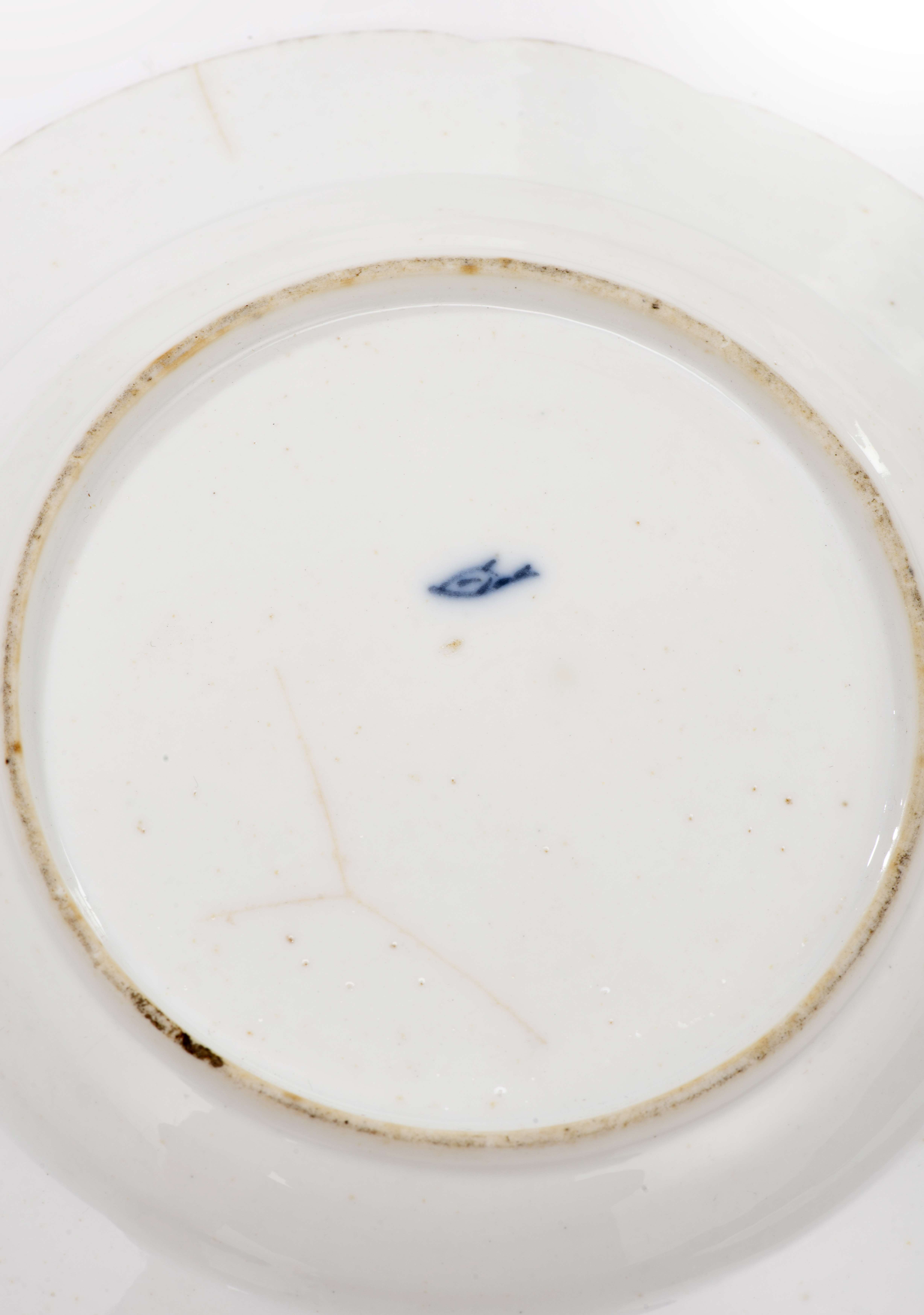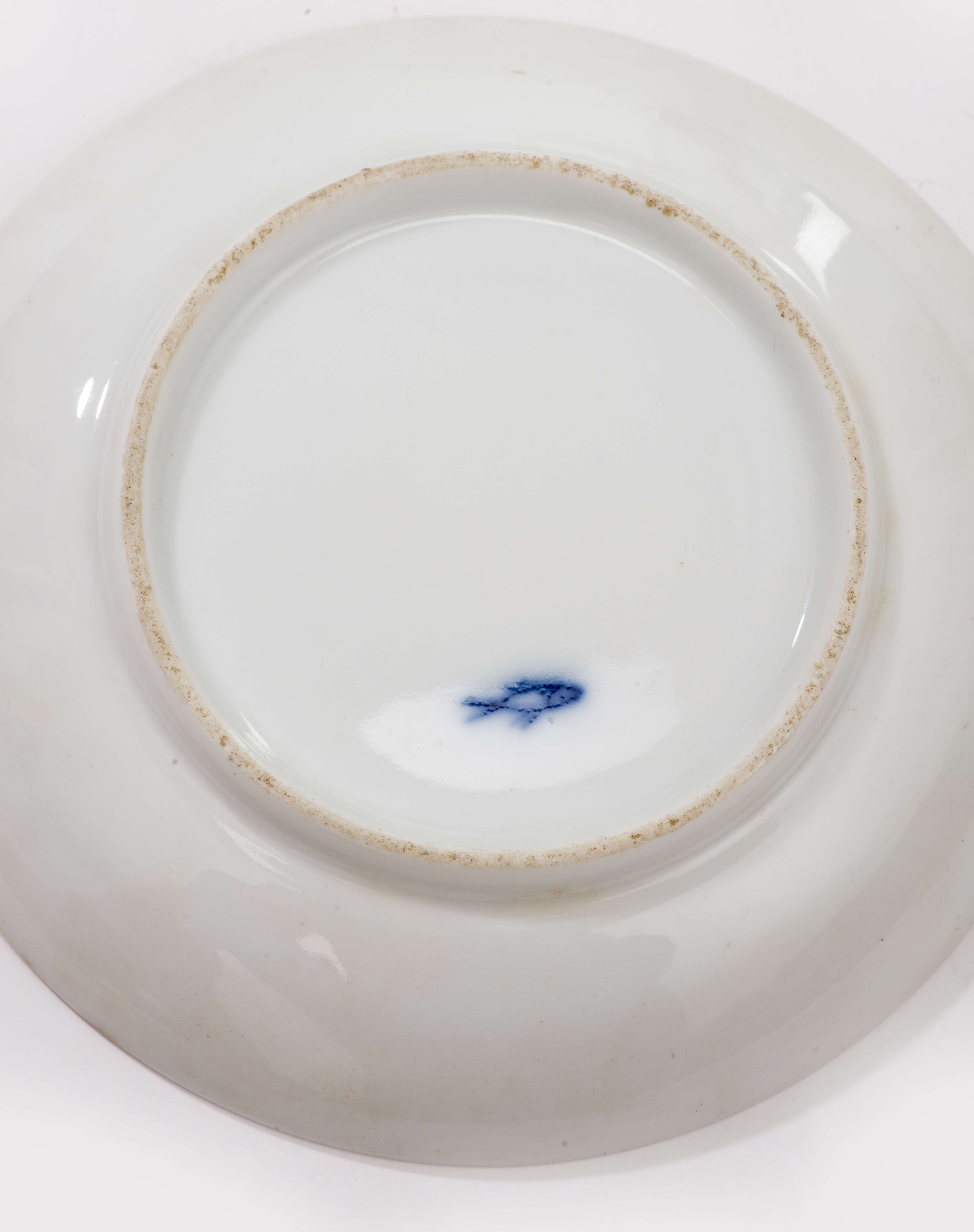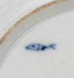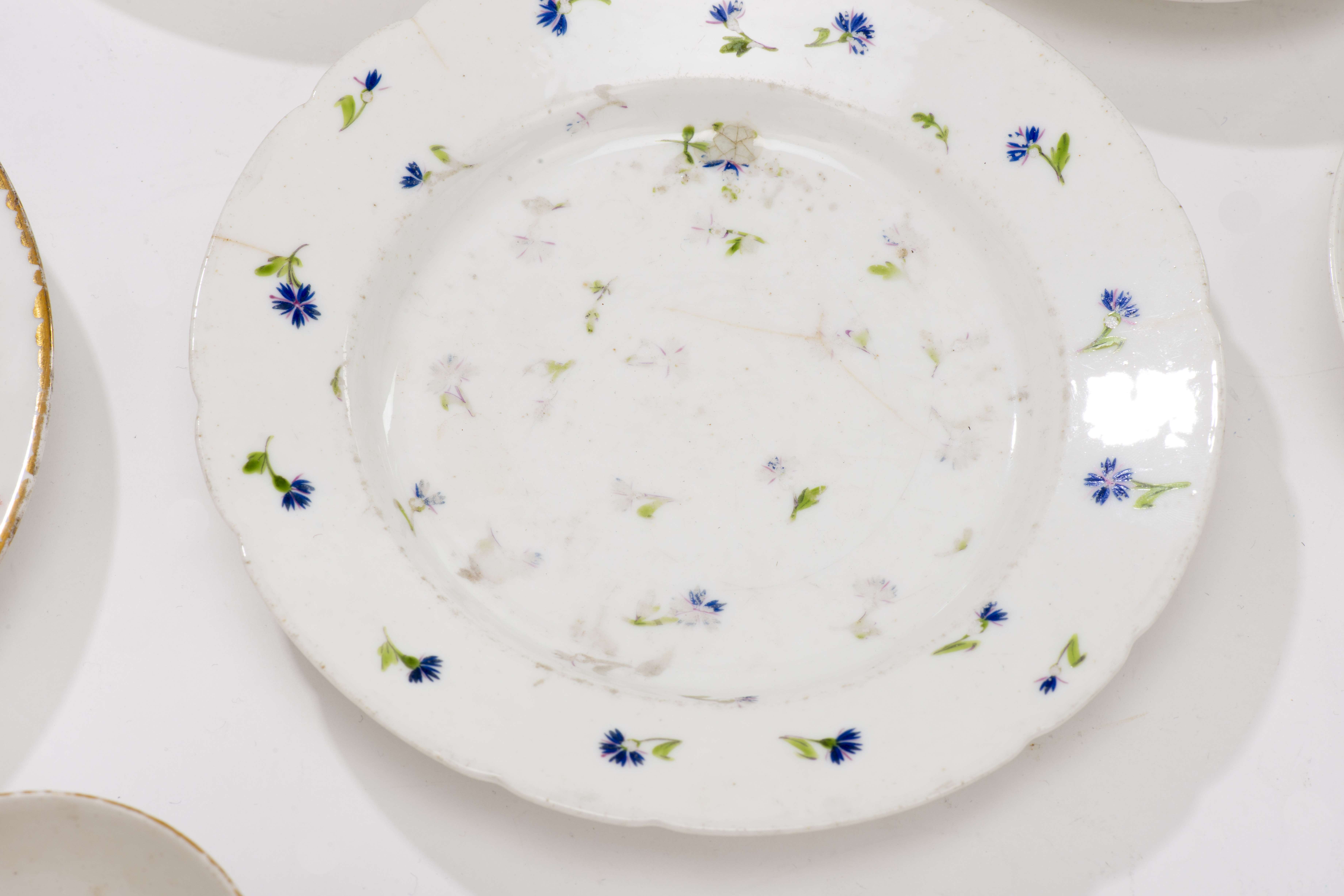 4 assiettes, 2 coupelles et 3 bols en porcelaine de Nyon au décor au bluet, XIXe.