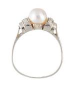 Bague en or gris .750 ou platine avec une perle au centre de 7 mm et 6 diamants de taille 8/8.