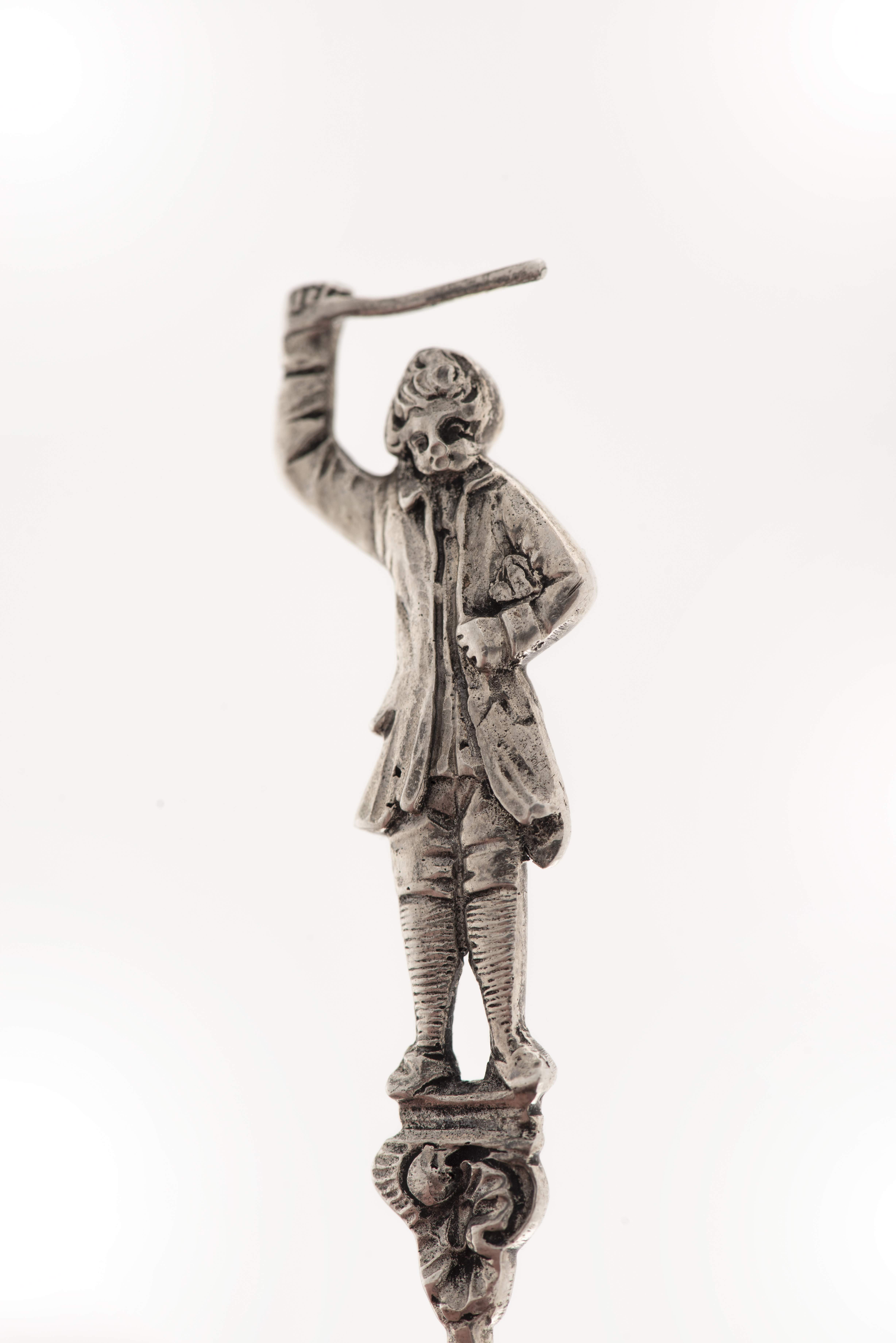 12 cuillères à moka en argent .800 à manche terminé par un musicien.