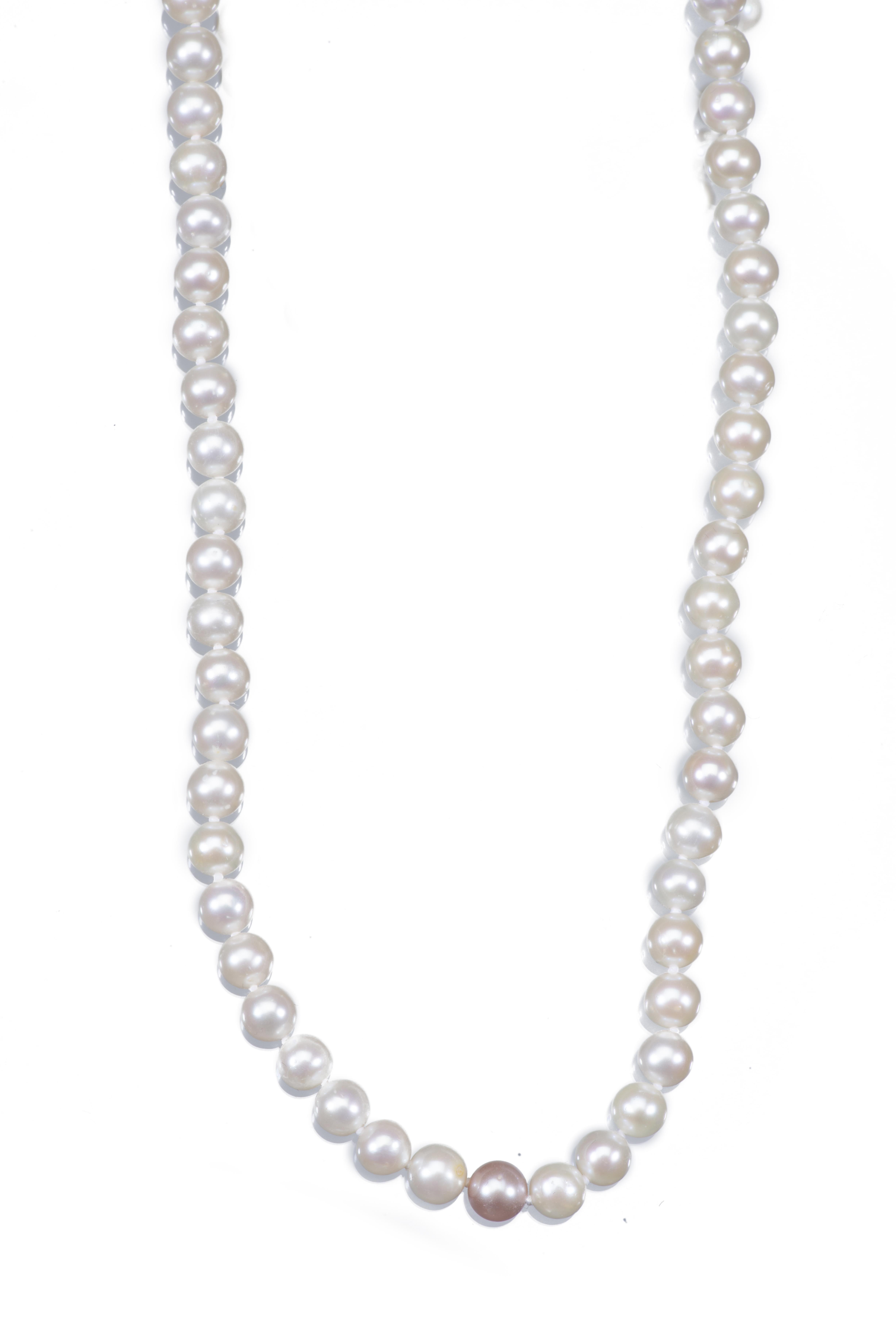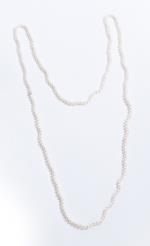 Long sautoir de perles de culture blanches et une perle rose par Asprey.