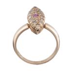 Bague en or rose marquise sertie au centre d'un rubis et pavée de 18 diamants