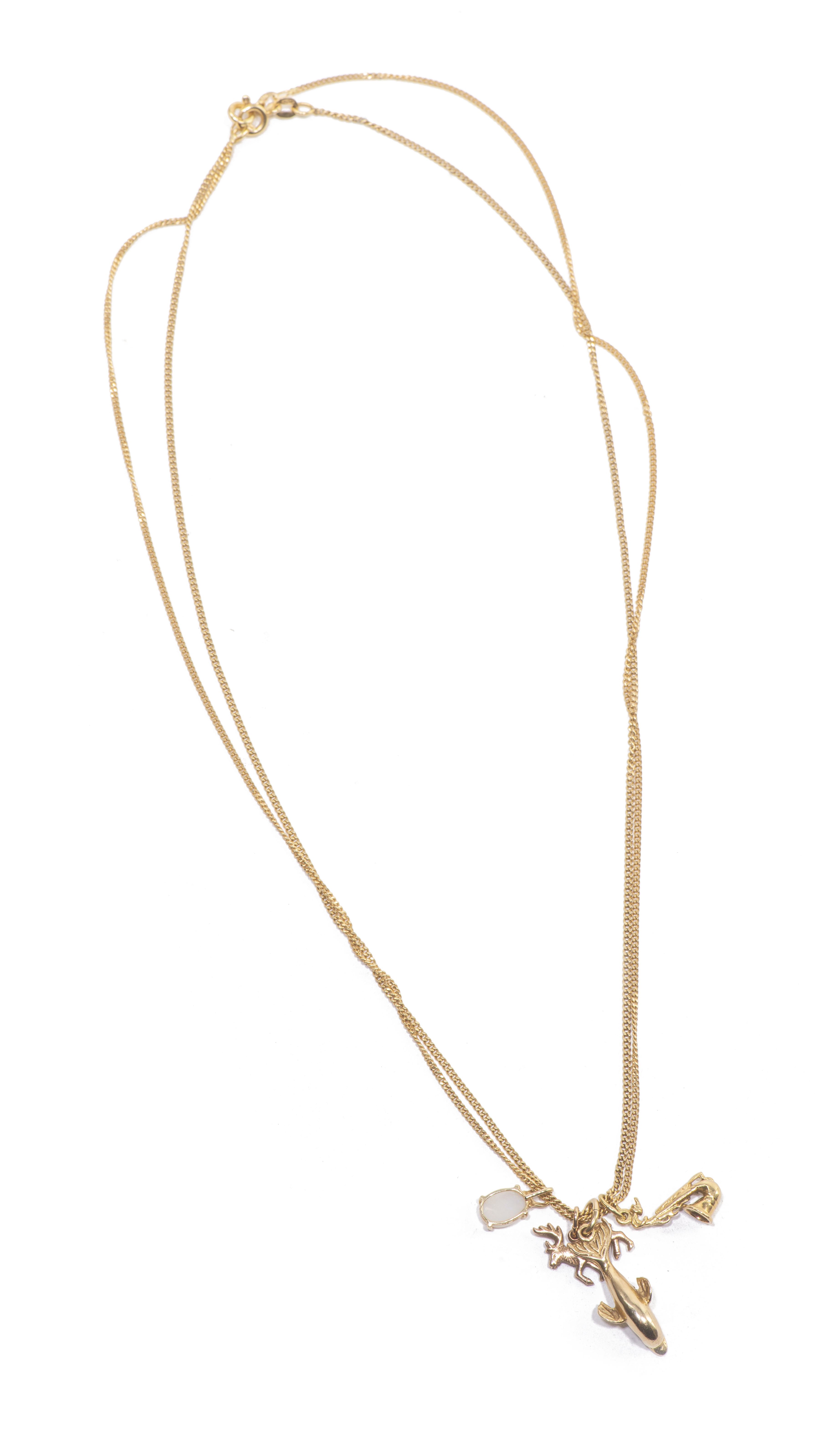 Deux chaînes en or jaune .750 avec 4 pendentifs