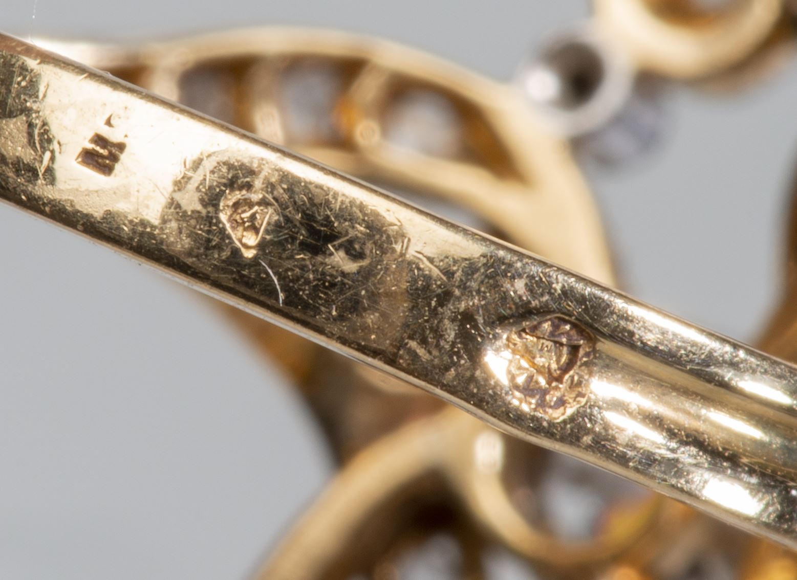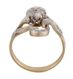 Bague géométrique Art nouveau en or jaune sertie de 22 diamants et un diamant central