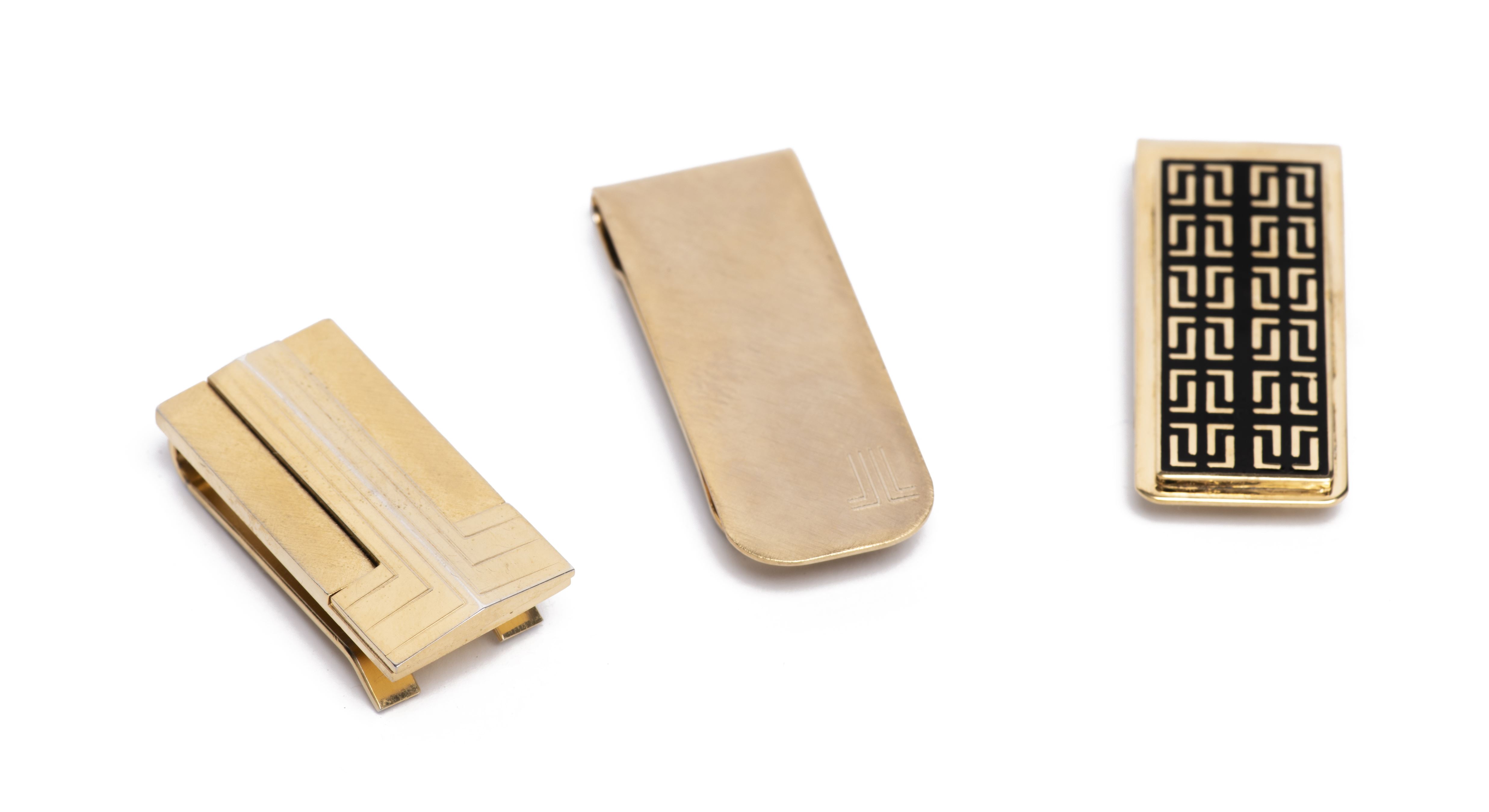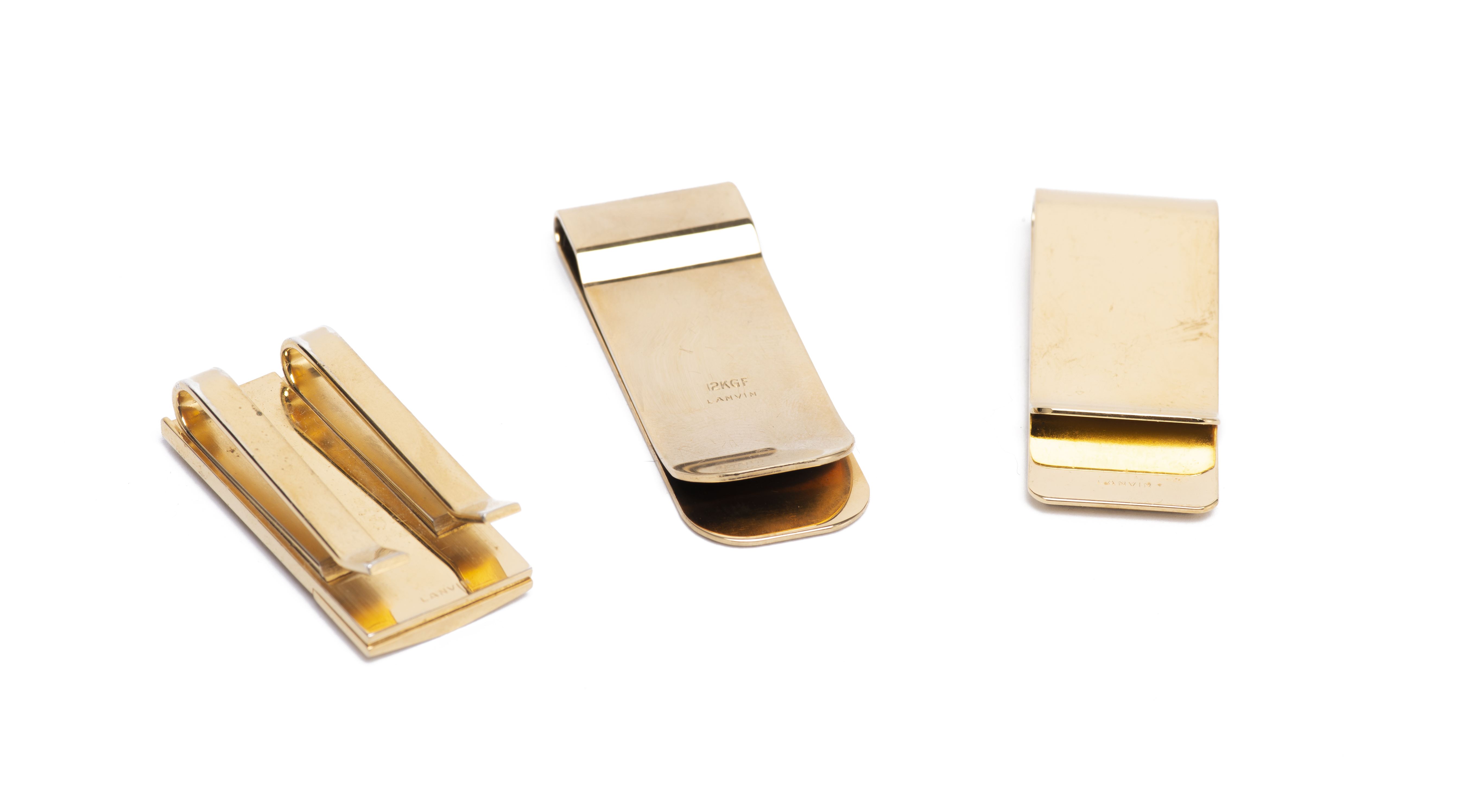 Lanvin, ensemble de 3 pinces à billet en métal doré