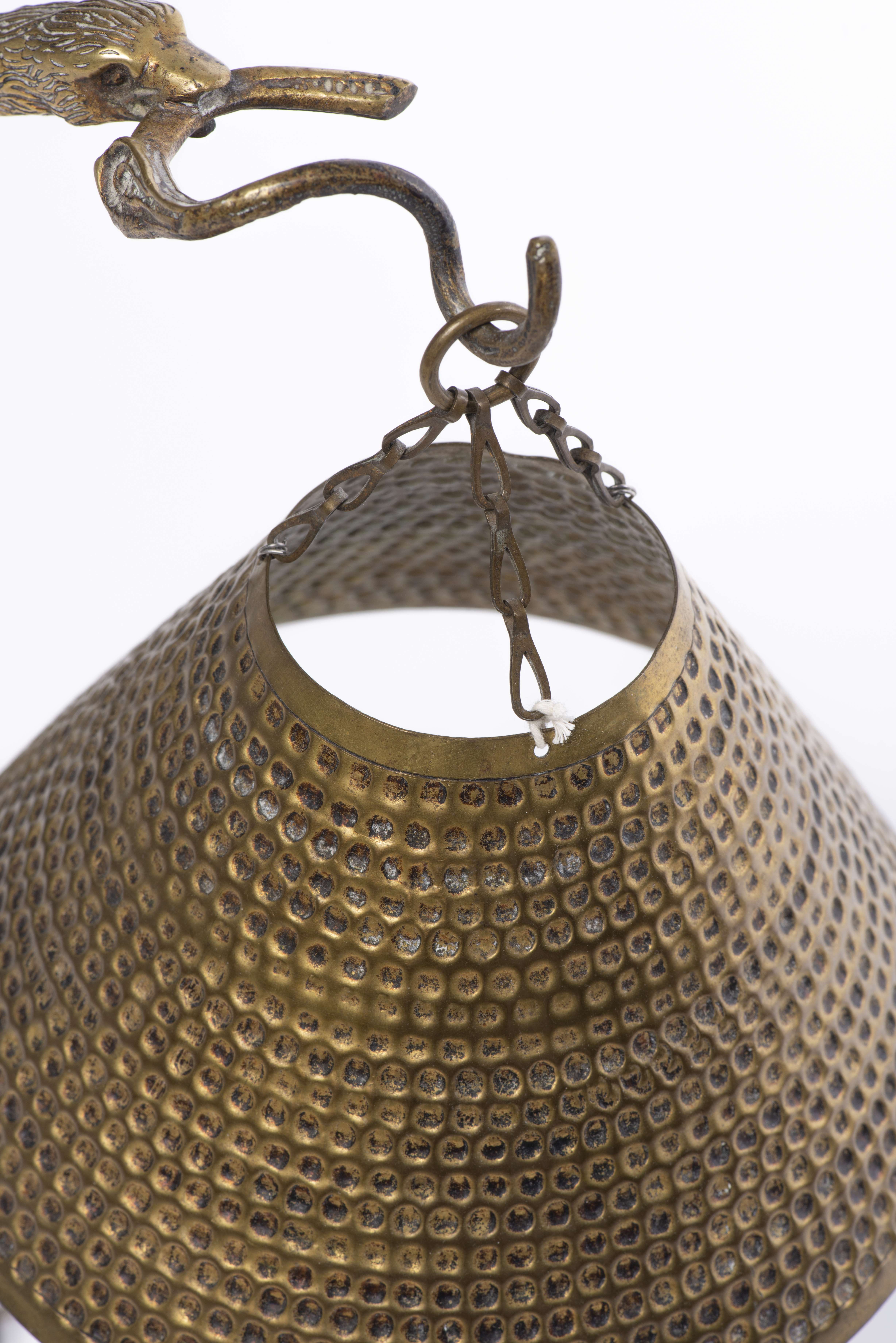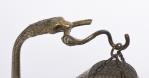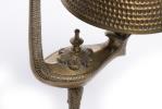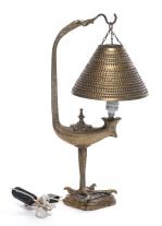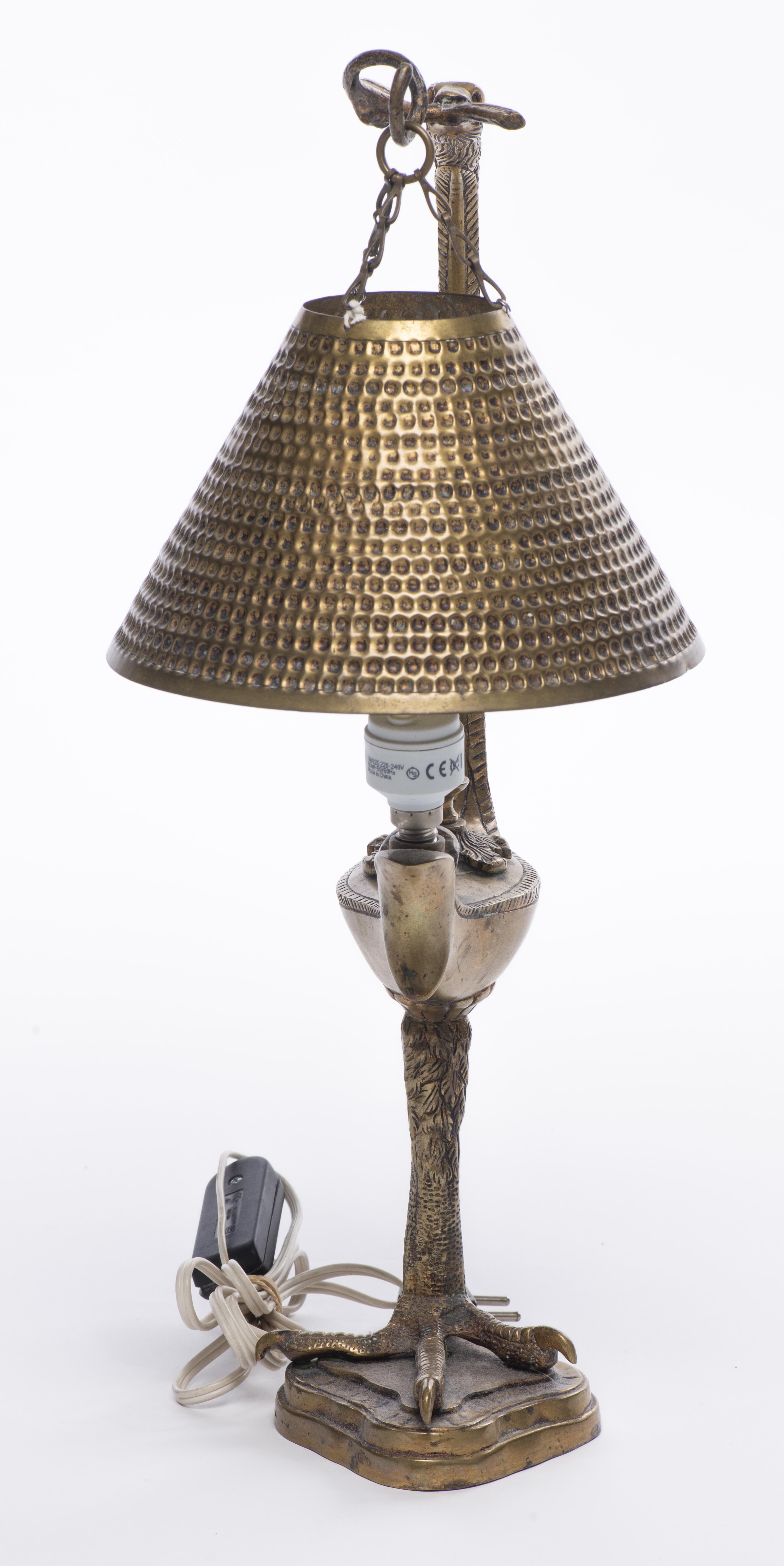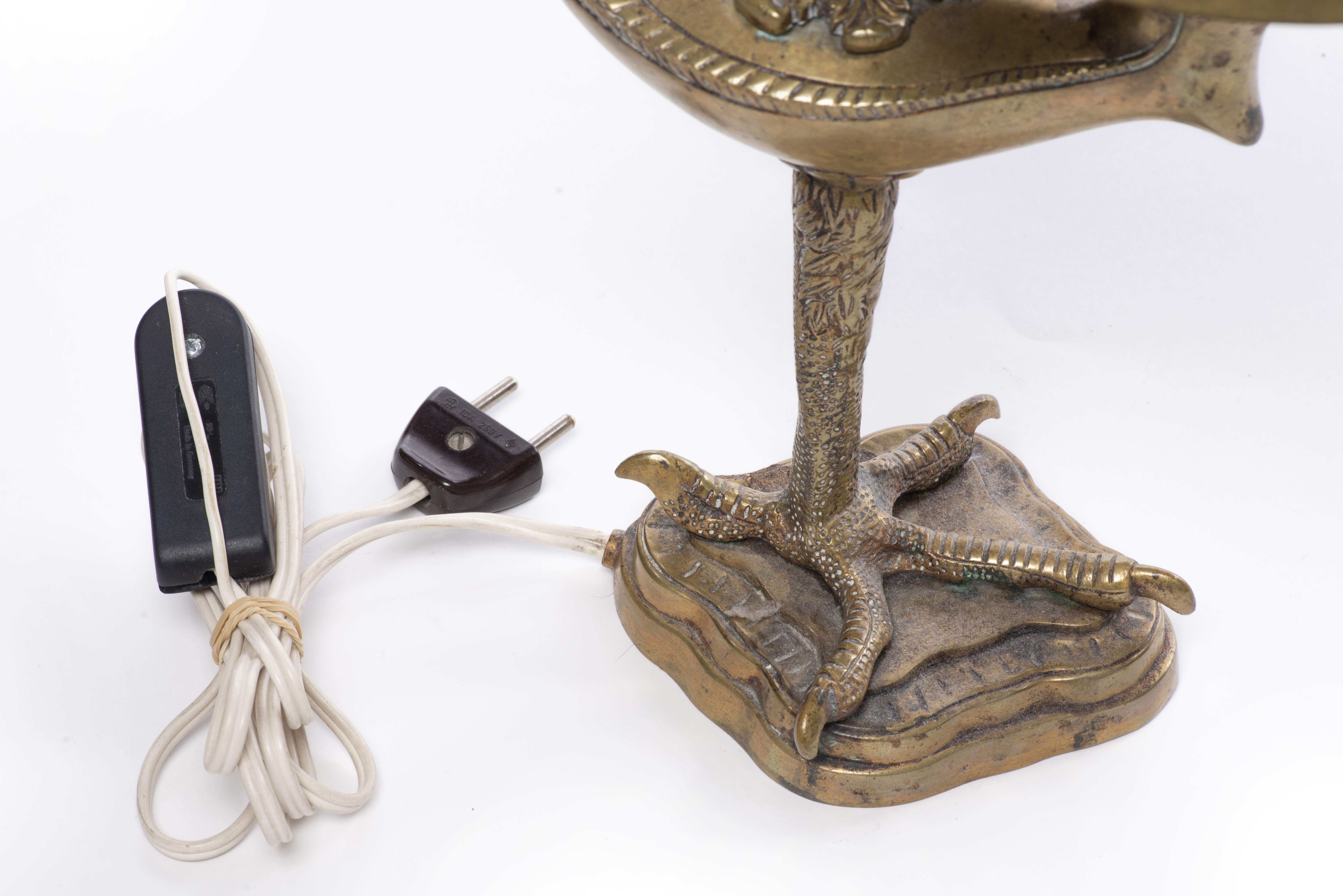 Lampe de table en bronze doré représentant une lampe à huile posée sur la patte d'un rapace.