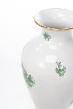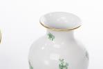 On y joint 2 vases en porcelaine de Herend à décor de fleurs vertes H. 23 cm D. 12 cm