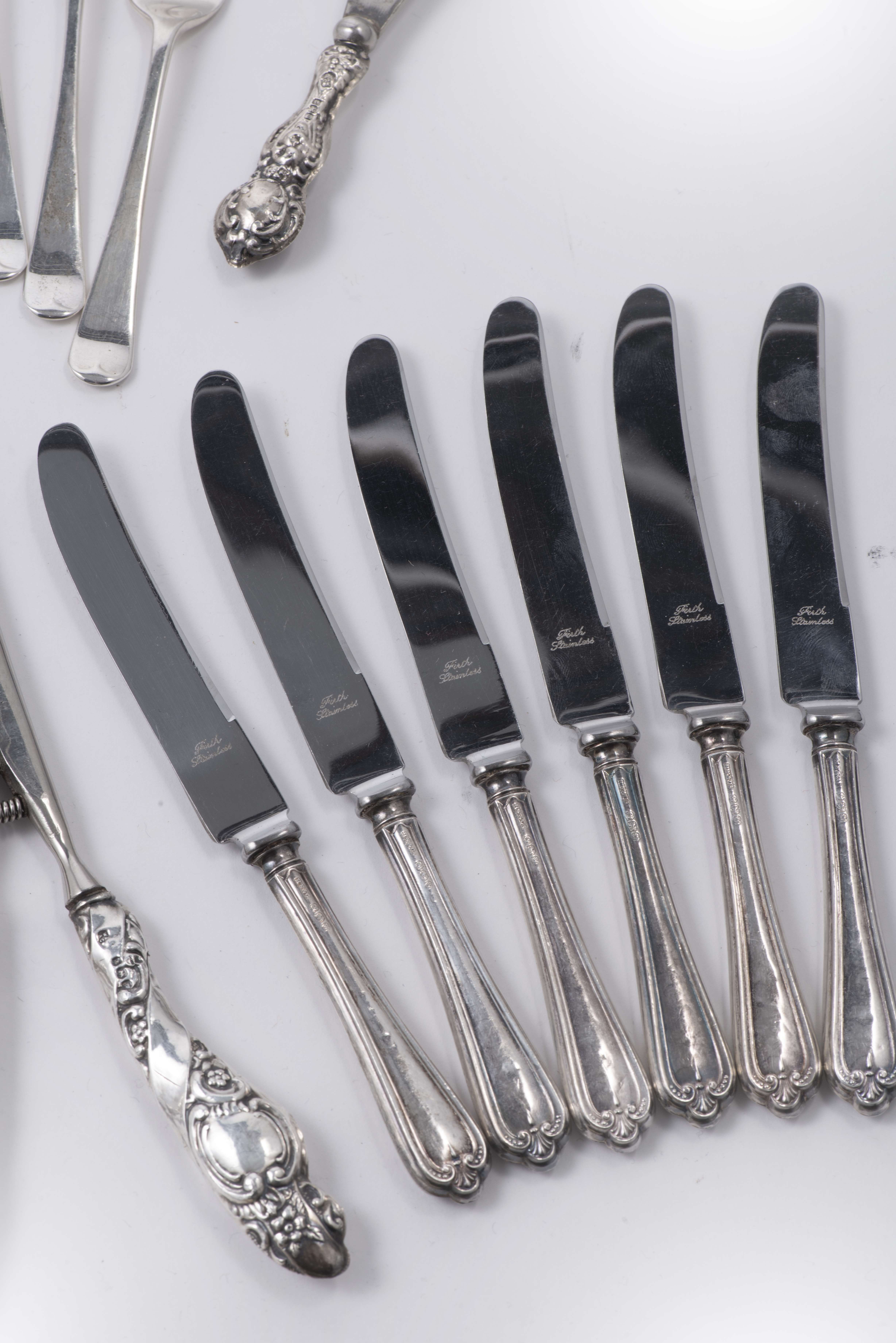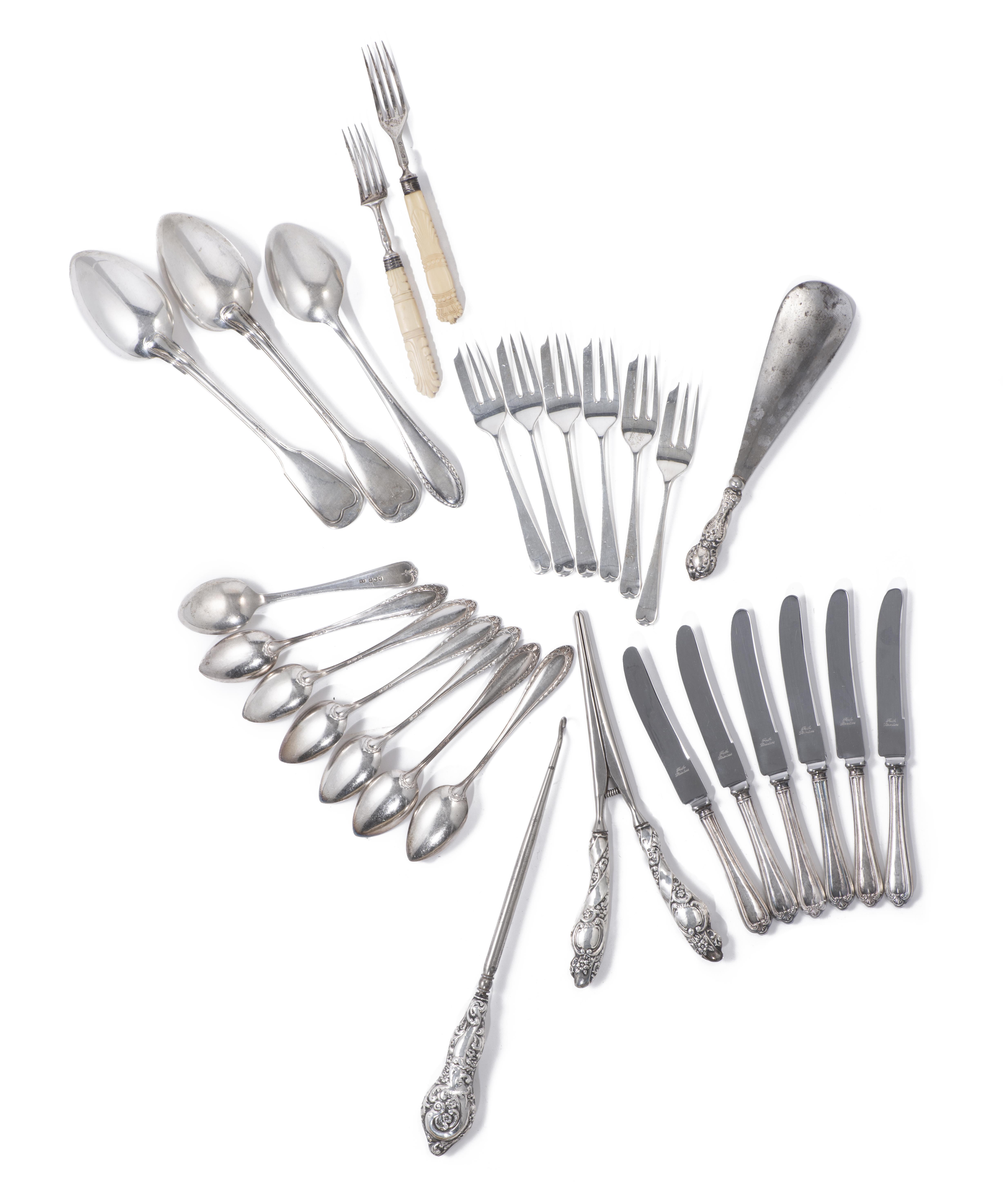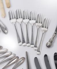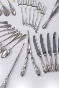 - 6 fourchettes et 6 couteaux (manches fourrés) à dessert en argent sterling .925