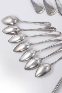 - 6 cuillères à dessert et 1 grande cuillère en argent .800 allemand