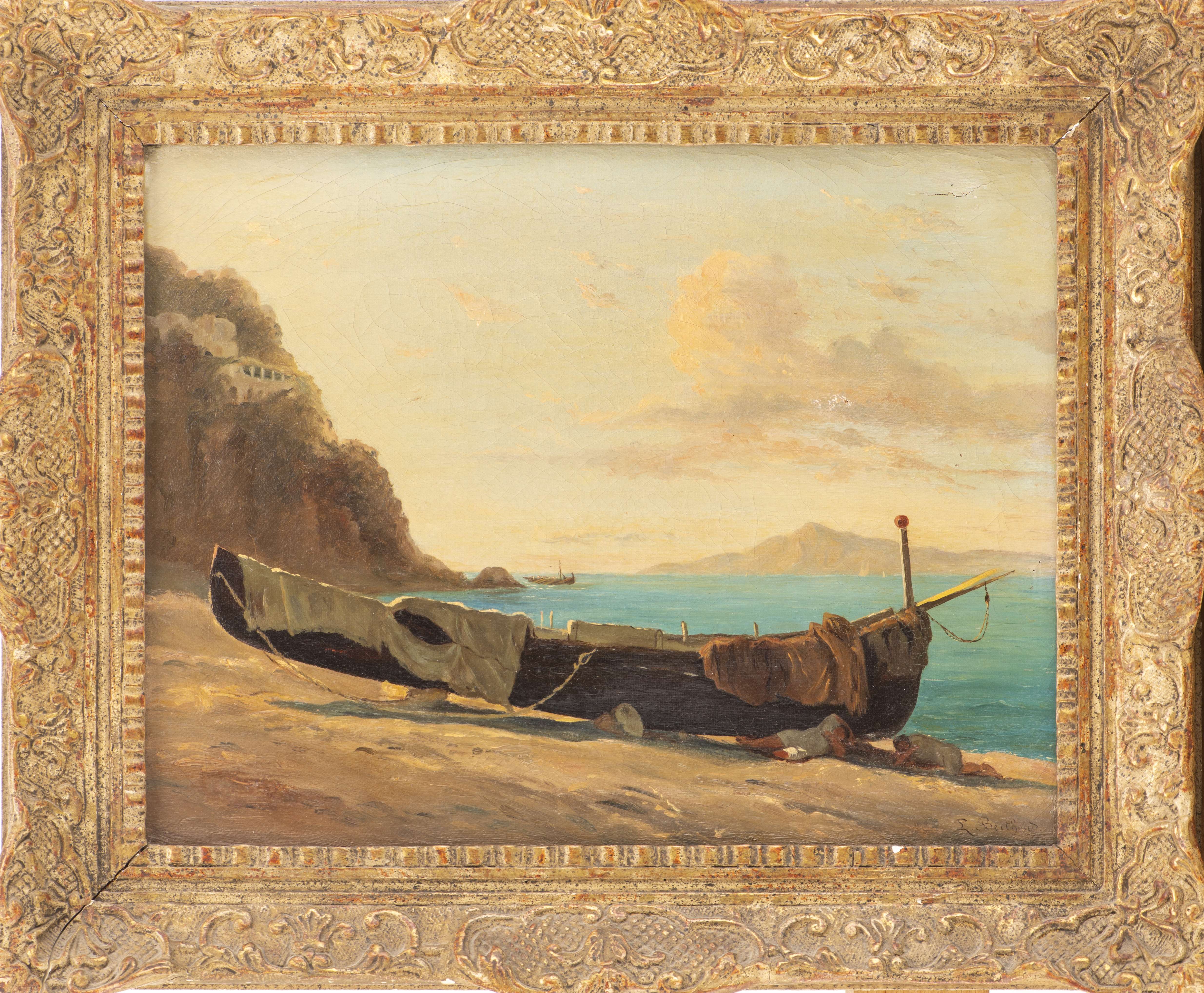 Léon-Rodolphe BERTHOUD (1822-1892), "Paysage italien de bord de mer".